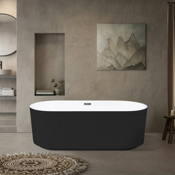67" Acrylic Freestanding Bathtub With Unique Pleated Design: Spacious Oval Shape, Matt Black Finish, Chrome Overflow & Pop Up Drain Matt Black Oval Bathroom Freestanding Tubs Polished 61 69 In Contemporary Soaking Center Acrylic Acrylic