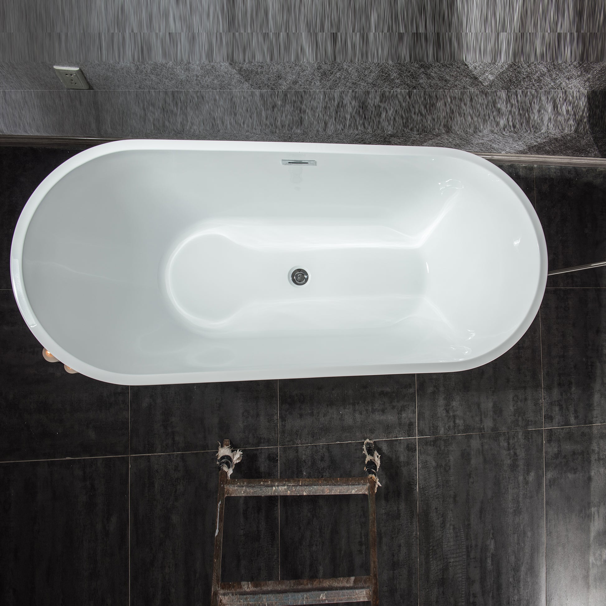 67'' Acrylic Freestanding White Soaking Bathtub With Classic Oval Shape, Chrome Drain, Slotted Overflow, Cupc Certified, Glossy White 24A09 67 Gloss White Acrylic