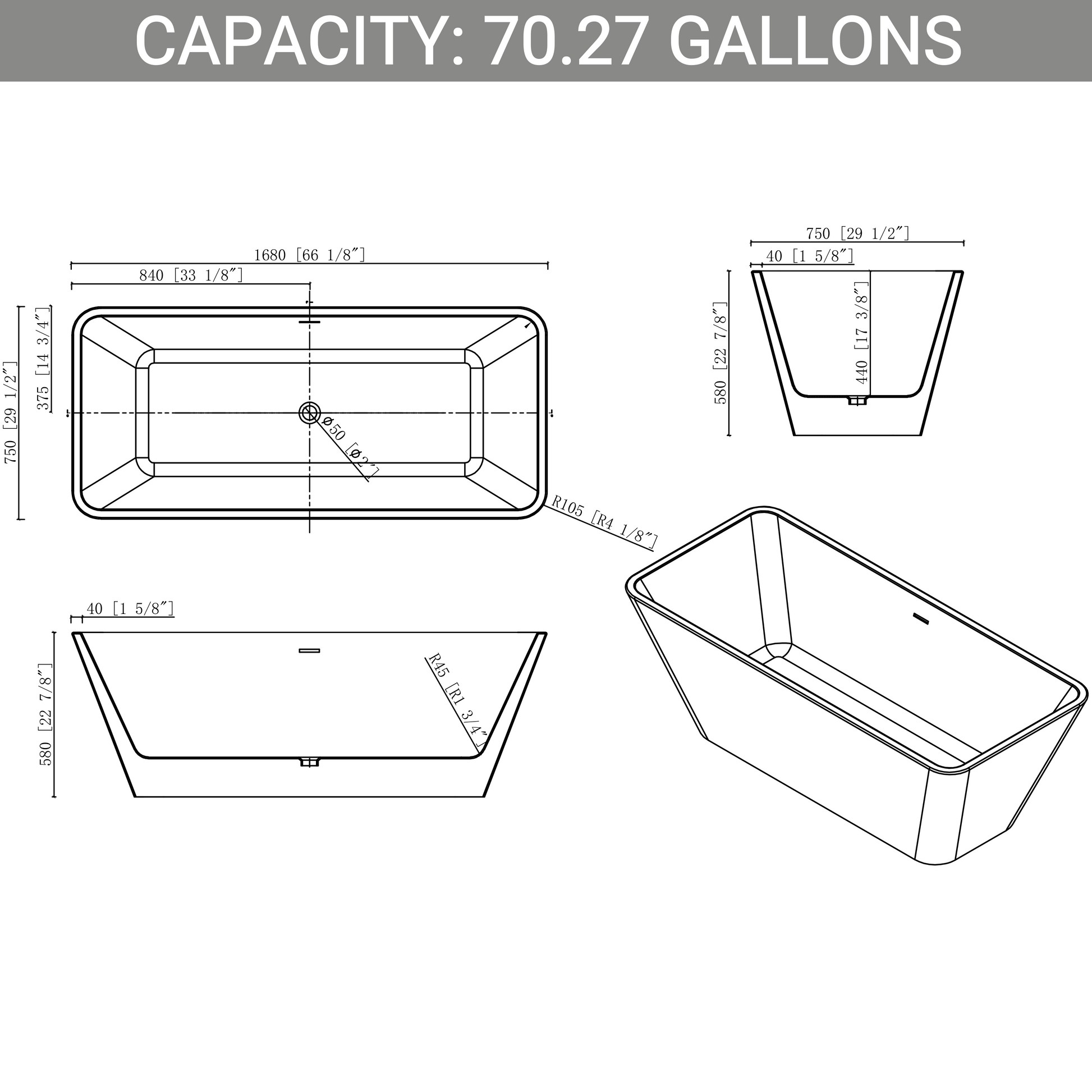 67" X 30" Acrylic Rectangular Freestanding Bathtub, Contemporary Soaking White Tub With Brushed Nickel Overflow And Pop Up Drain, Cupc Certified, Glossy White Yy032 168 66 W S Gloss White Rectangle