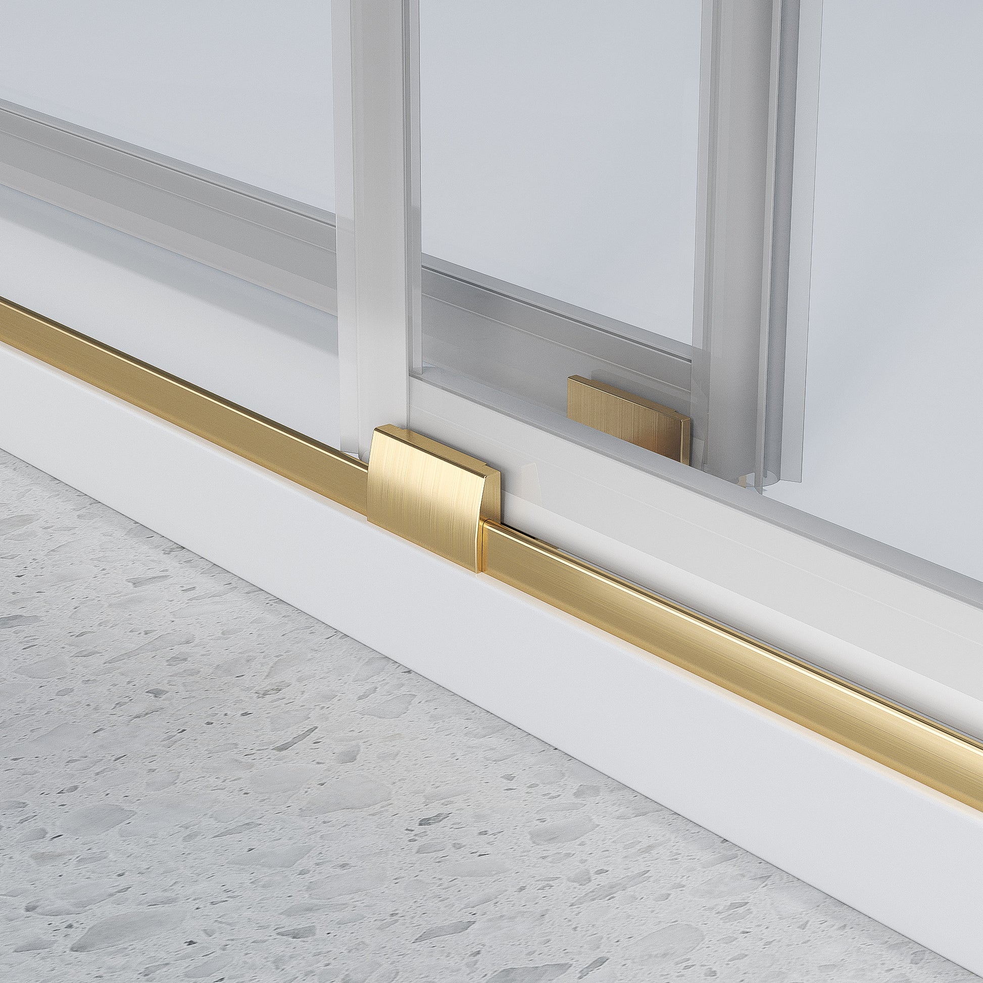 68'' 72'' W X 76'' H Soft Closing Double Sliding Frameless Shower Door With 3 8 Inch 10Mm Clear Glass In Brushed Gold Brushed Gold Stainless Steel