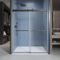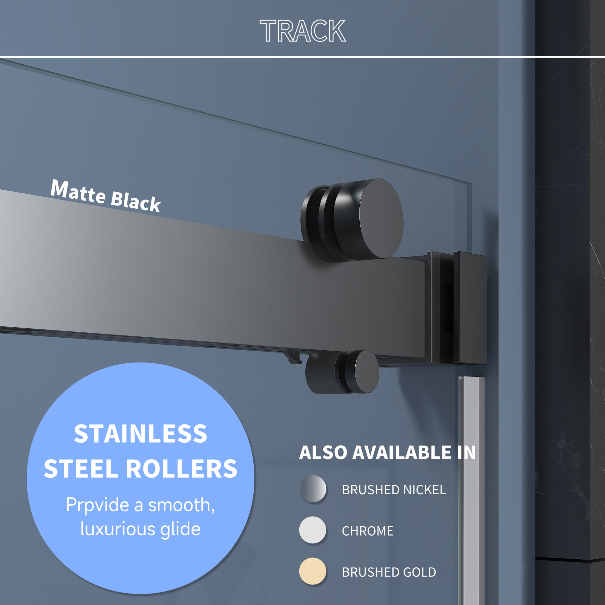68'' 72'' W X 76'' H Soft Closing Double Sliding Frameless Shower Door With 3 8 Inch 10Mm Clear Glass In Matte Black Matte Black Stainless Steel