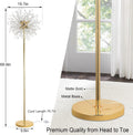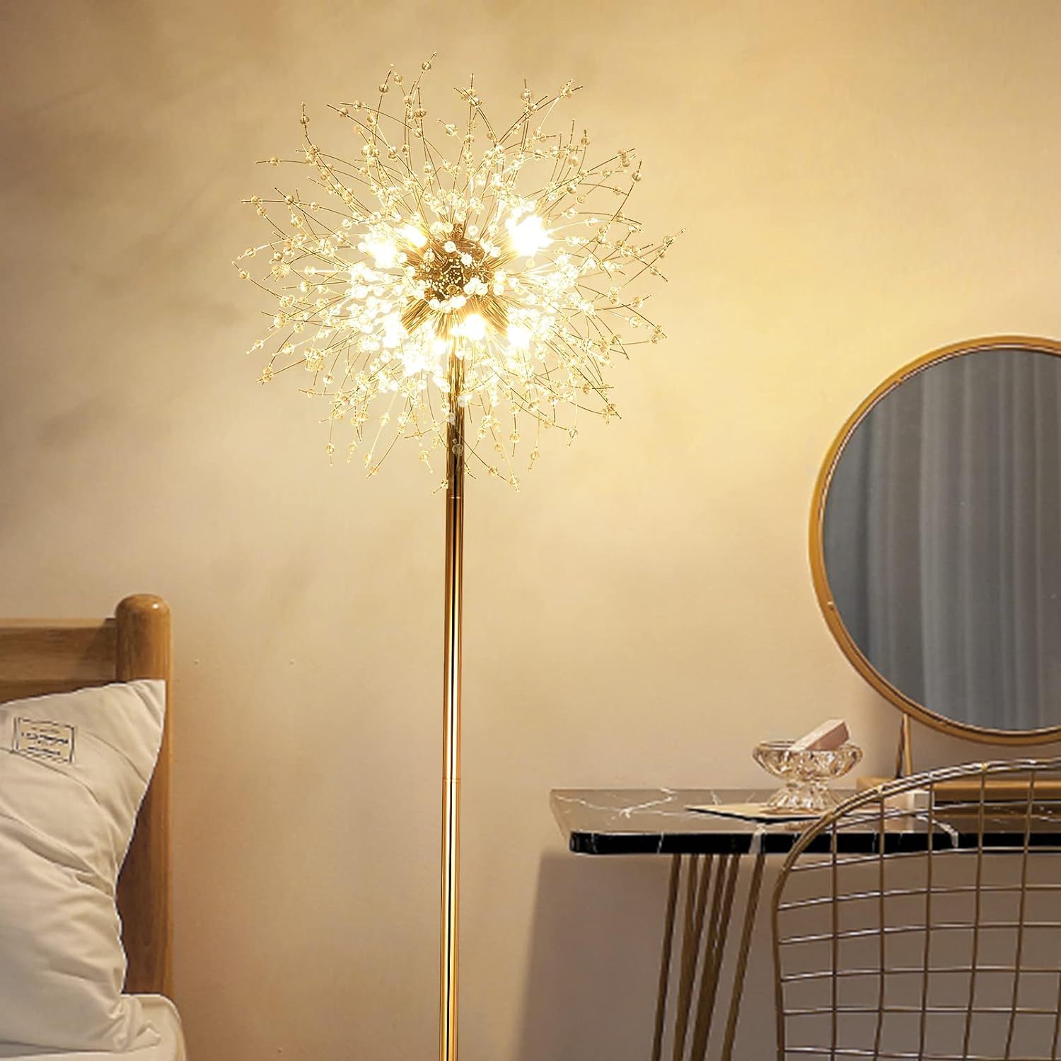 69 Inch Crystal Floor Lamp, Modern Standing Lamp With K9 Crystal, Led Floor Lamp With On Off Foot Switch, Metal Tall Pole Lamp For Living Room, Girls Room, Bedroom, Dresser, Office, Gold Finish Golden Crystal