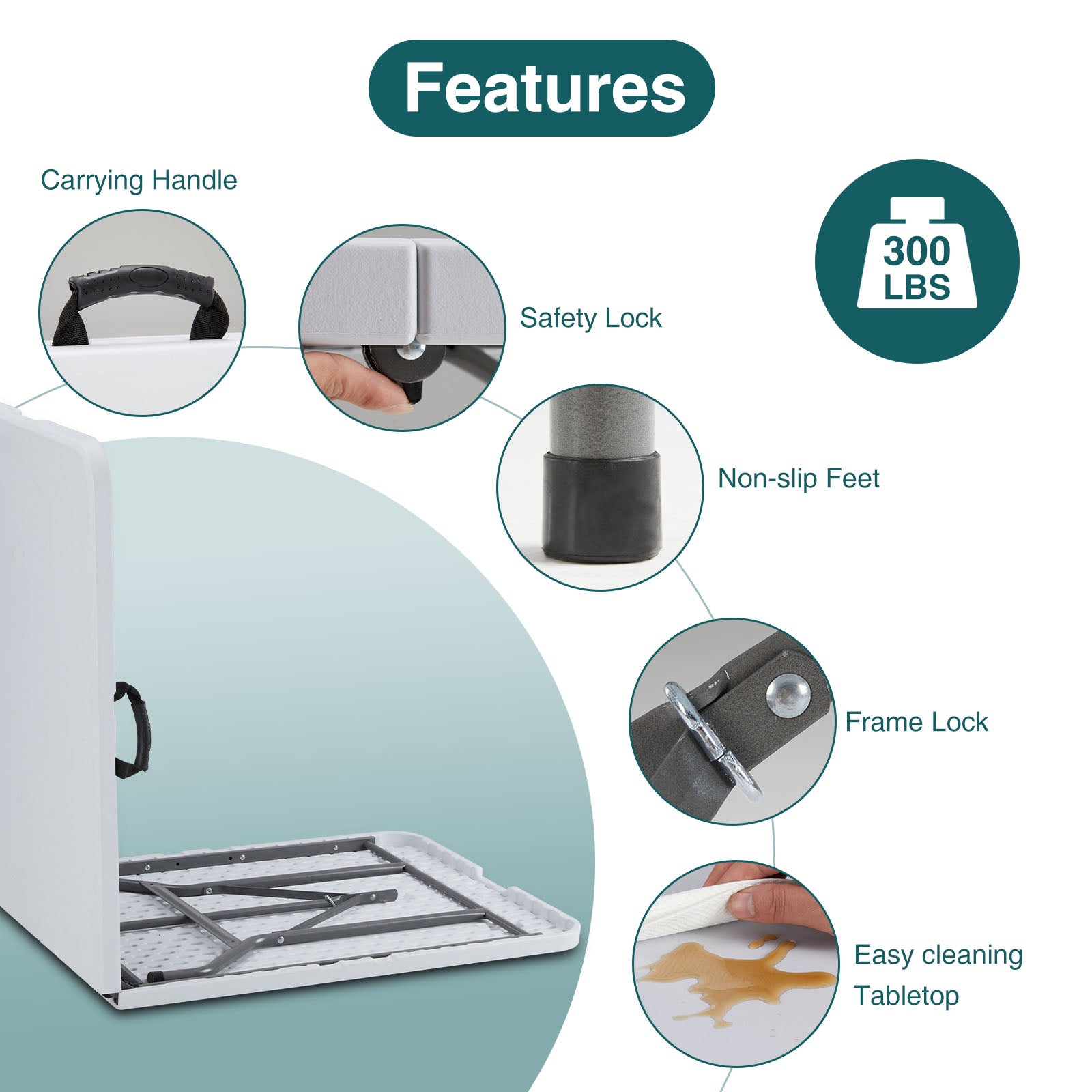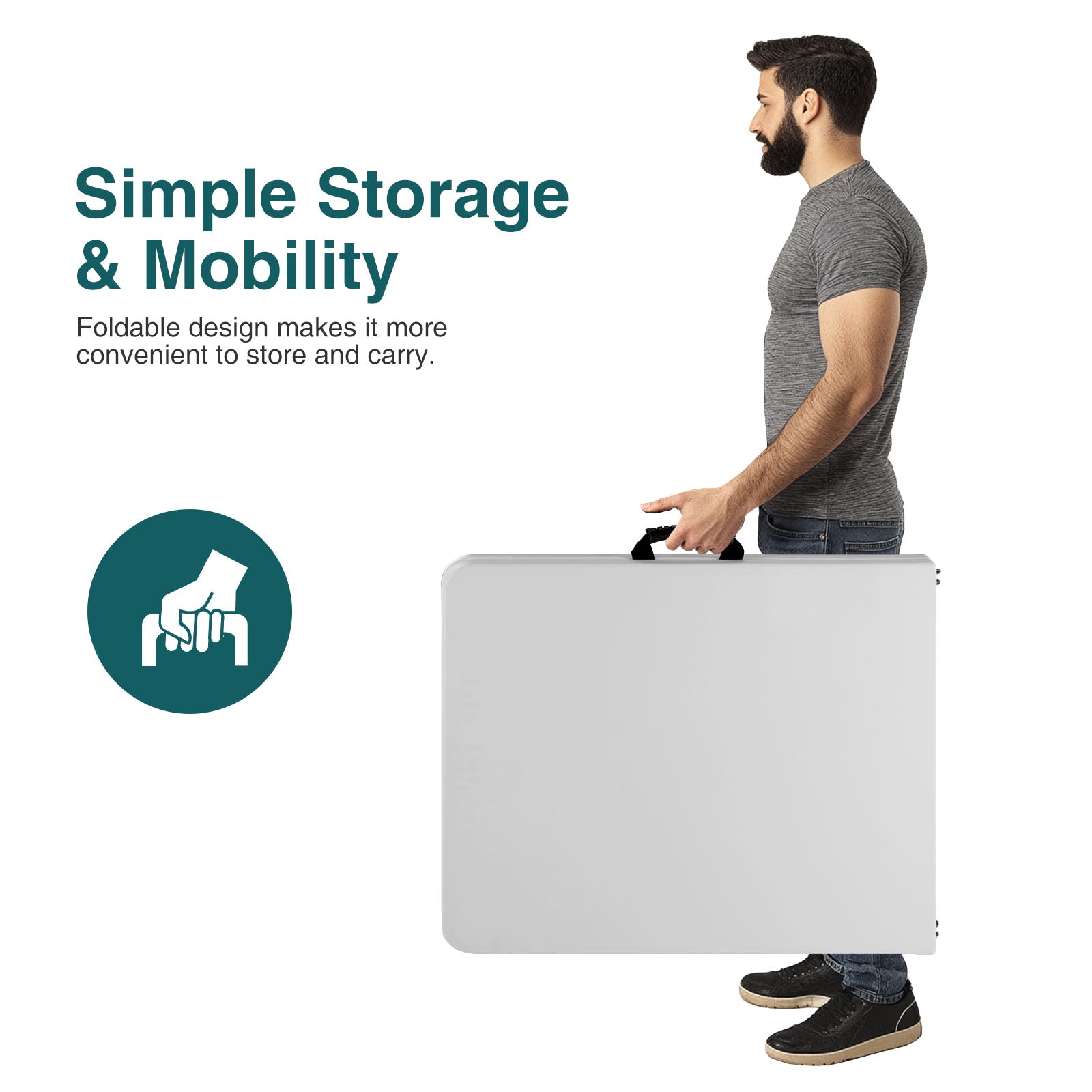 6Ft Folding Table Outdoor Indoor Heavy Duty Portable Table With Carrying Handle For Camping Picnic Party White Metal & Wood