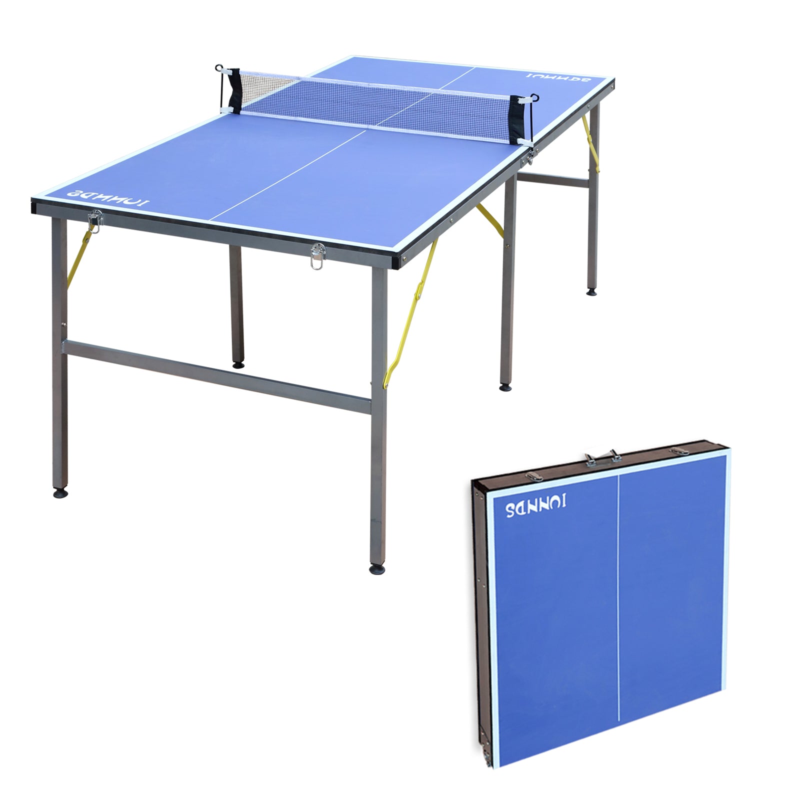 6Ft Mid Size Table Tennis Table Foldable & Portable Ping Pong Table Set For Indoor & Outdoor Games With Net, 2 Table Tennis Paddles And 3 Balls Blue Mdf
