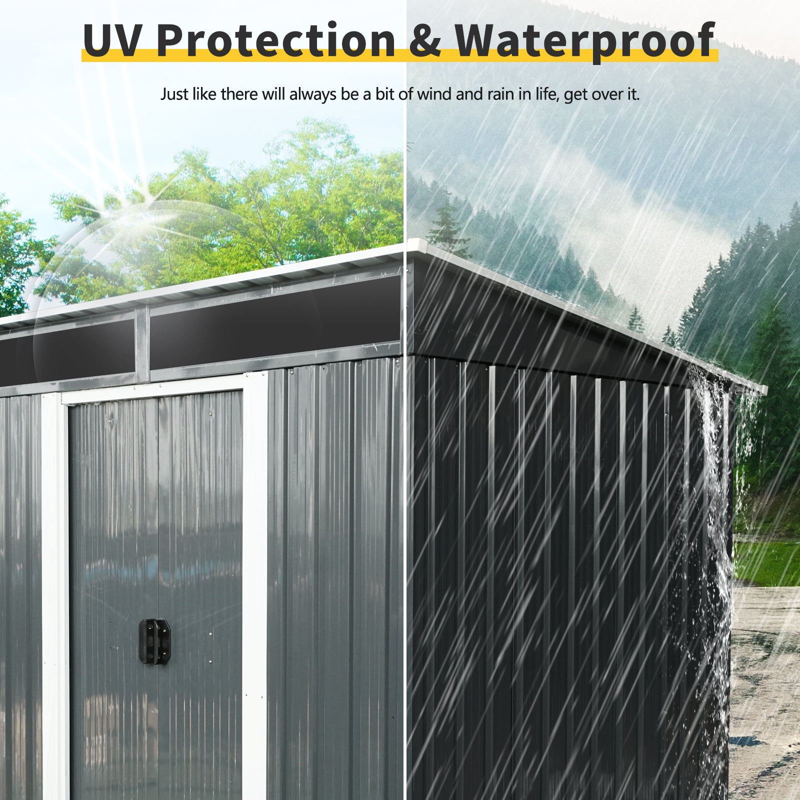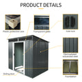 6Ft X 5Ft Outdoor Metal Storage Shed With Lockable Sliding Doors And Transparent Plate For Garden, Lawn Black And White Black White Iron