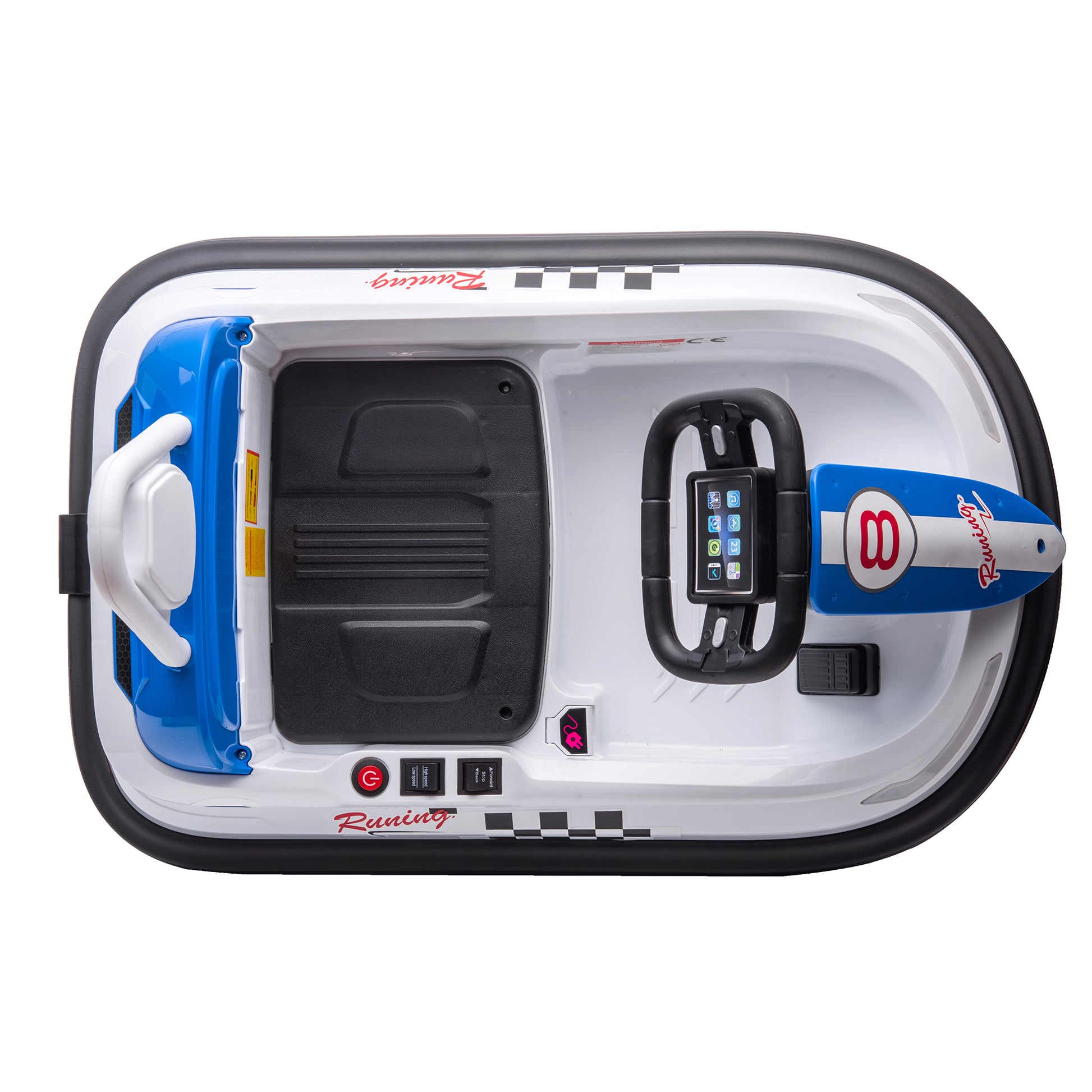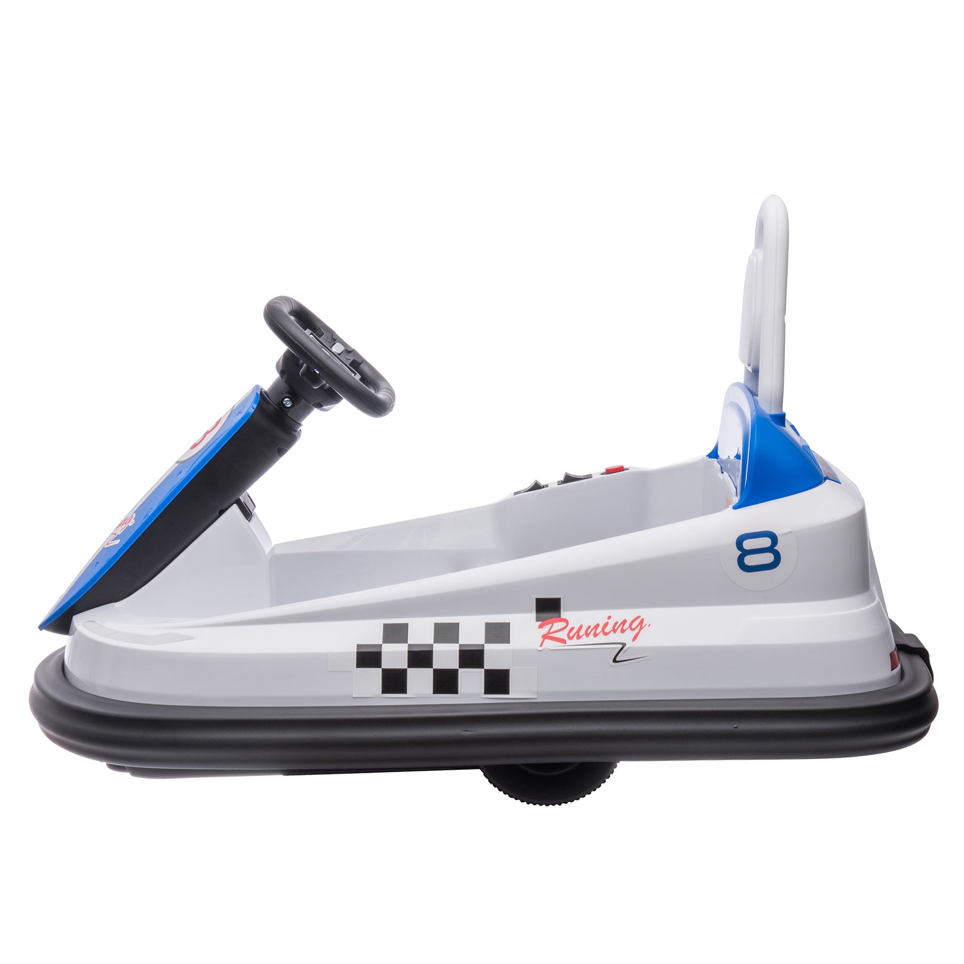 6V Kids Ride On Electric Go Kart Bumper Car W Parents Remote Control,Three Speed Adjustable,Led Lights,Horn,Bluetooth,Player&360 Spin,Vehicle Body With Anti Collision Padding For 18M . White Polypropylene