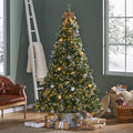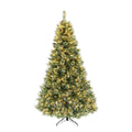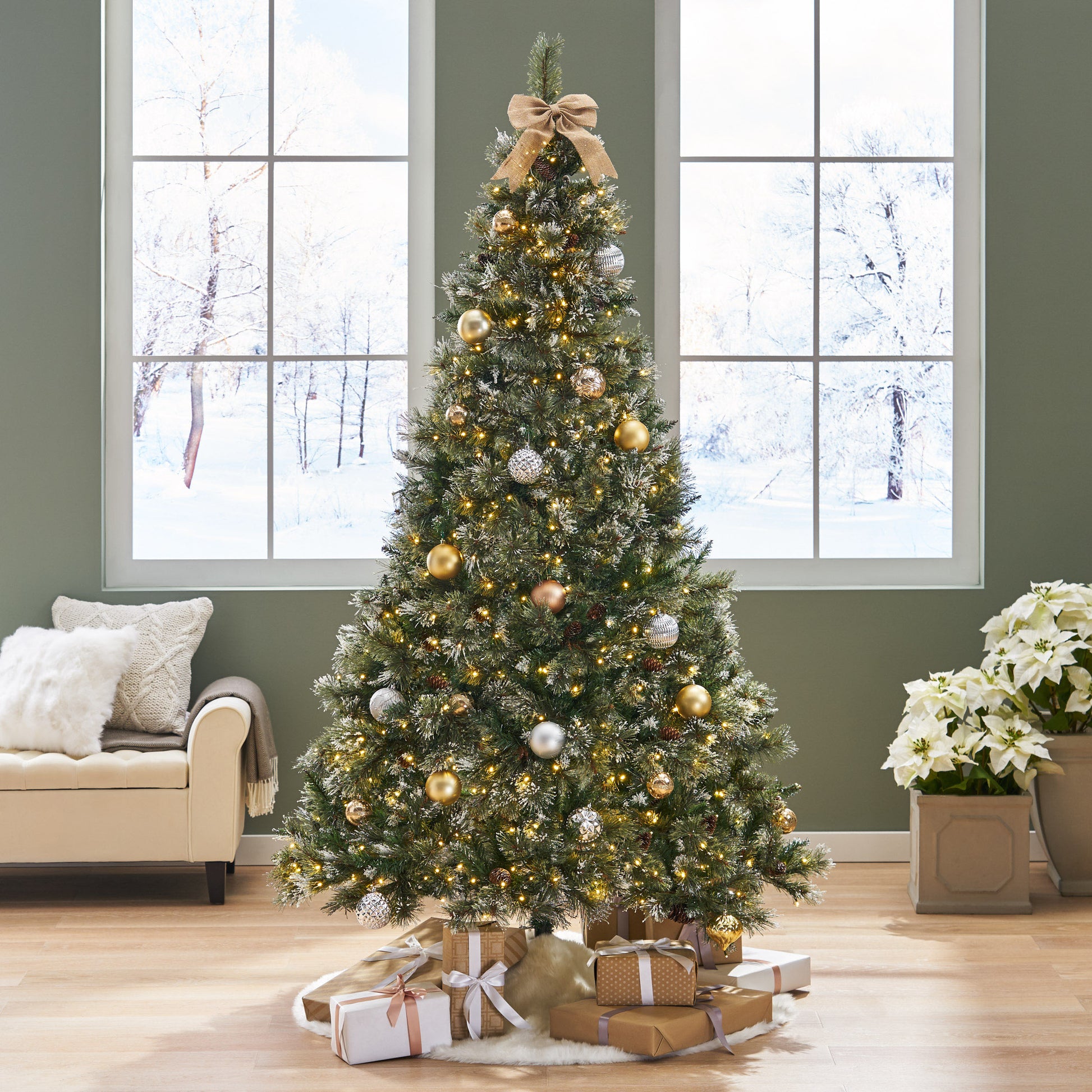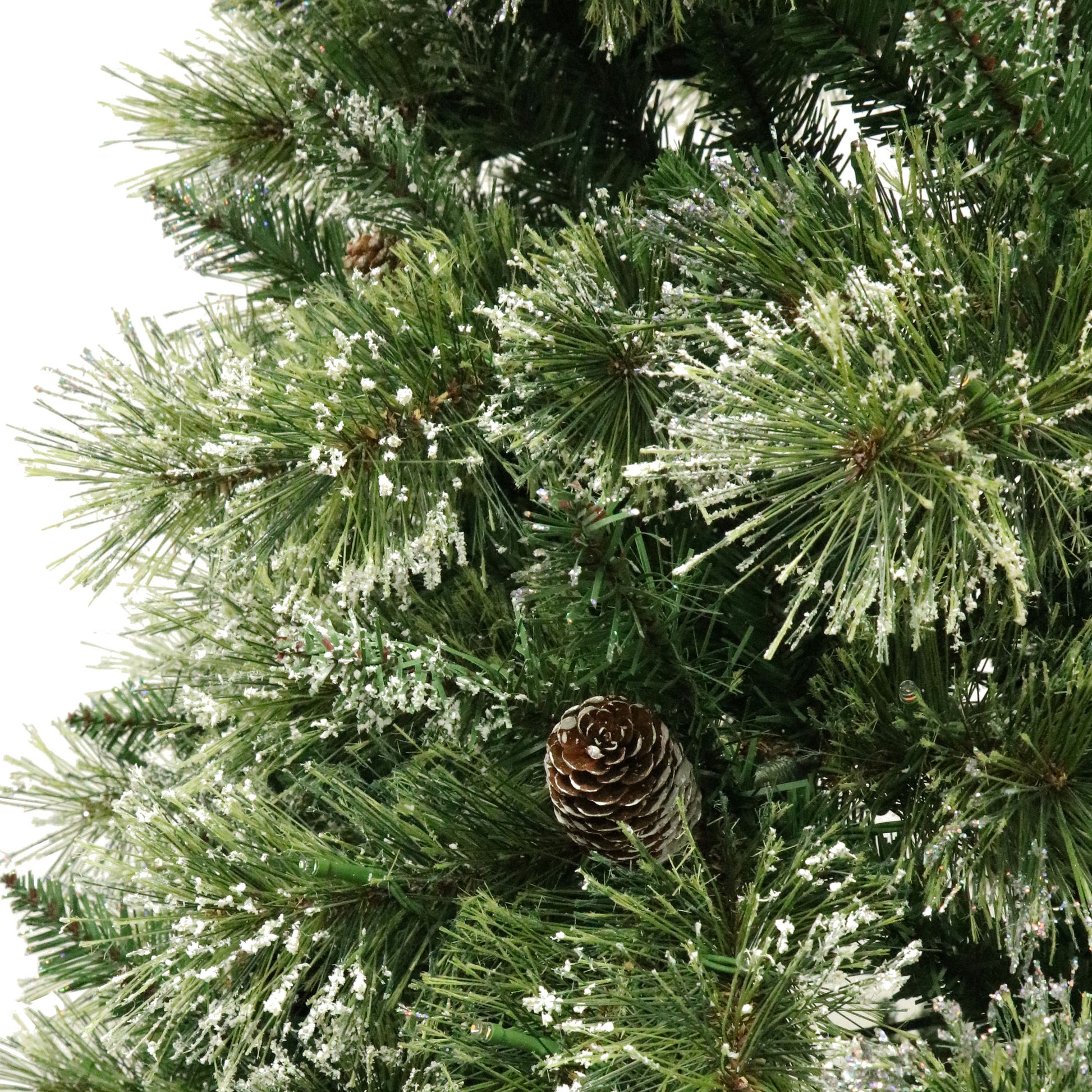 7.5' Brilste Mixed Hinged Tree With Snow And Glitter And 86 Frosted Pine Cones And 750 Clear Led Lights Green Pvc