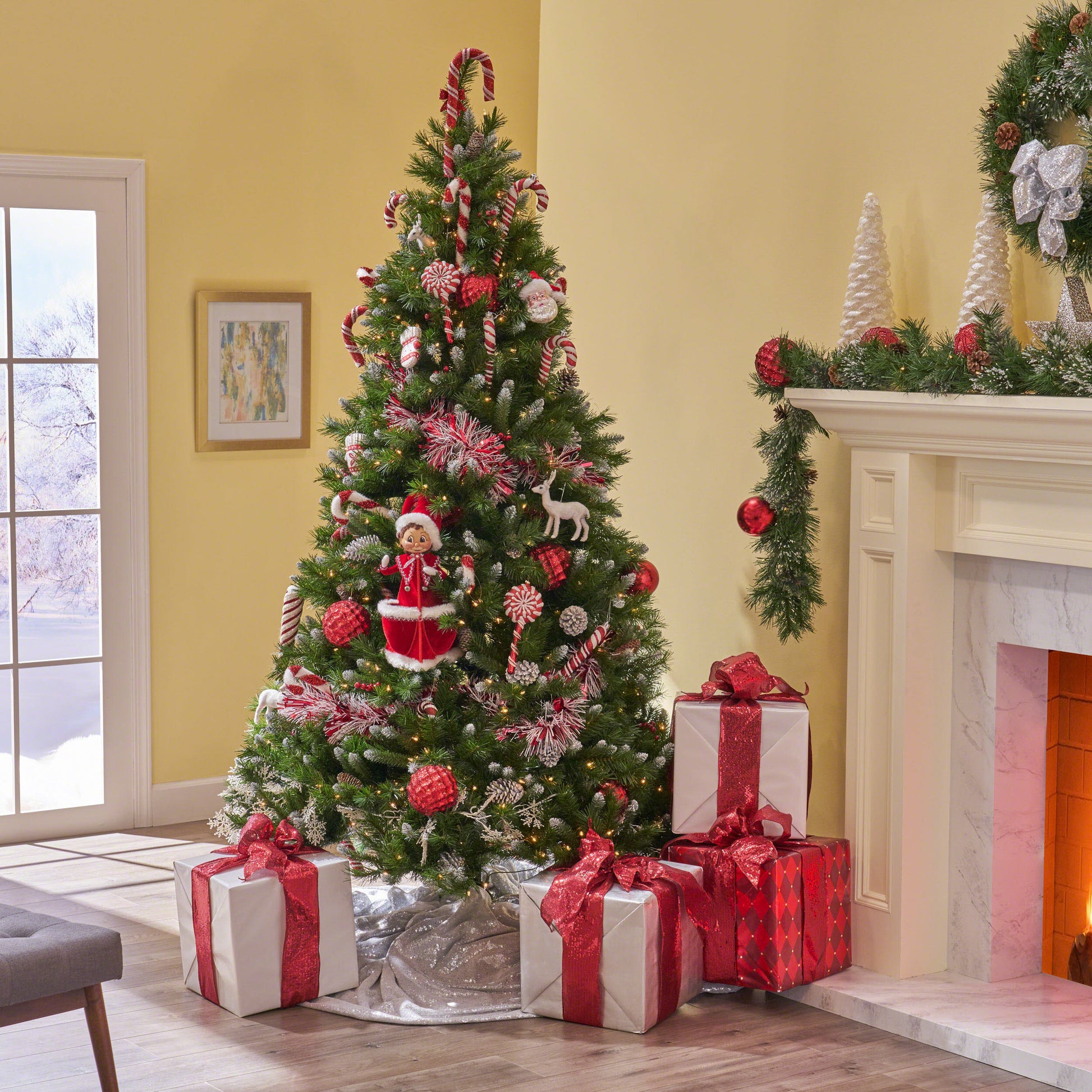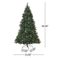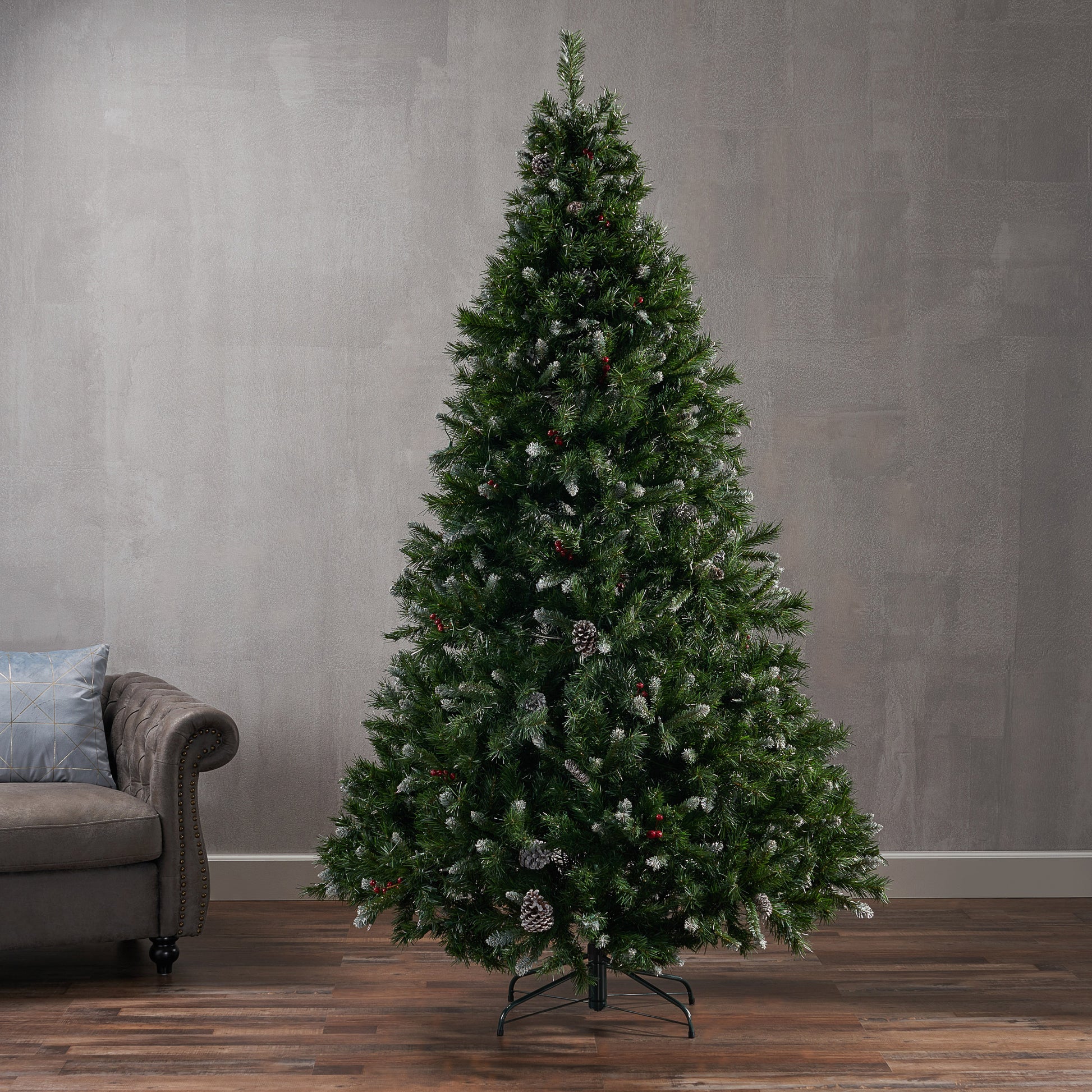 7.5' Mixed Frosted Hinged Tree With 56Frosted Pine Cones And 28Red Berry And 550Clear Lights,Dia:55 Green Pvc