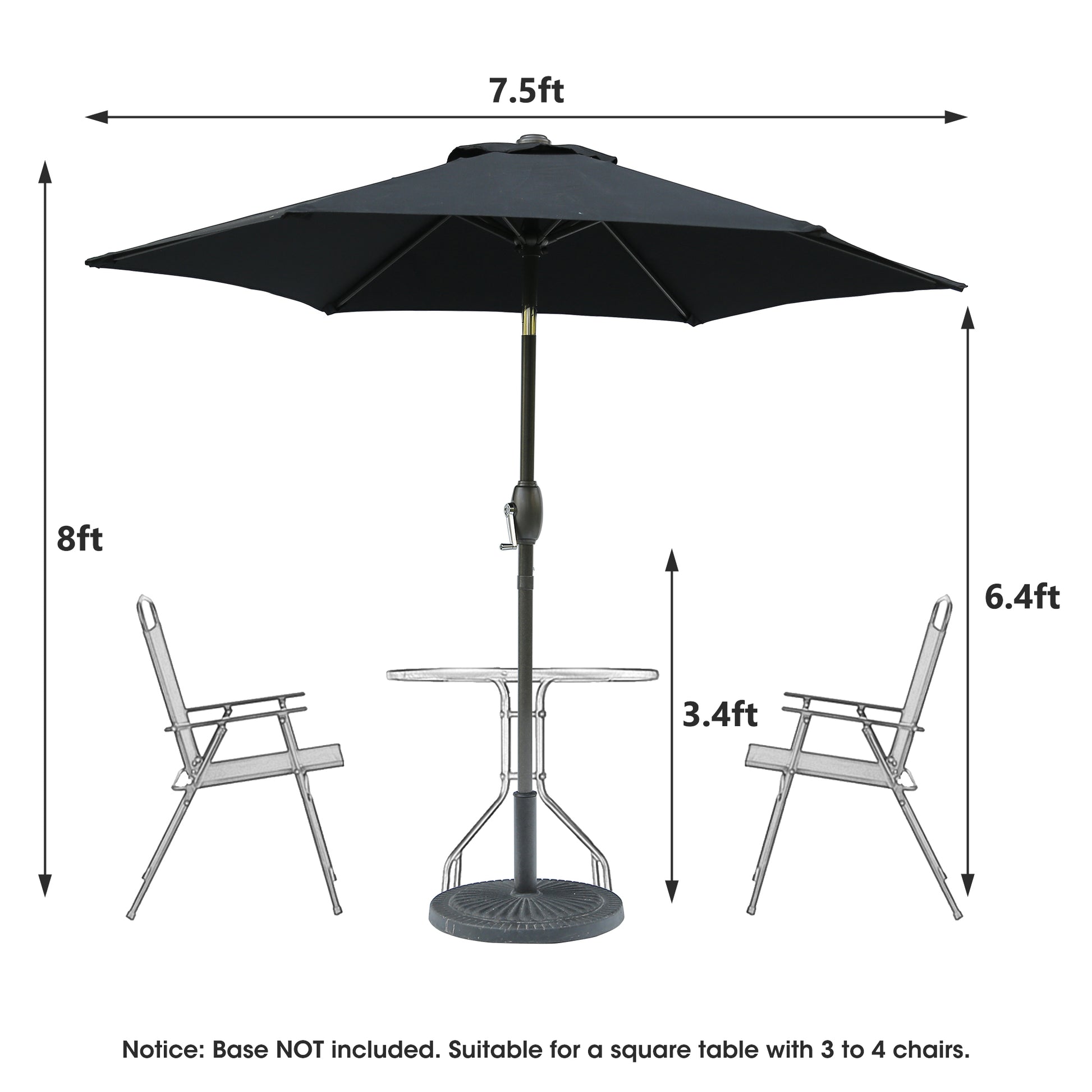 7.5Ft * 7.5Ft Patio Umbrella With Crank And Push Button Tilt, Outdoor Table Market Umbrella With Aluminum Pole Black Black Polyester