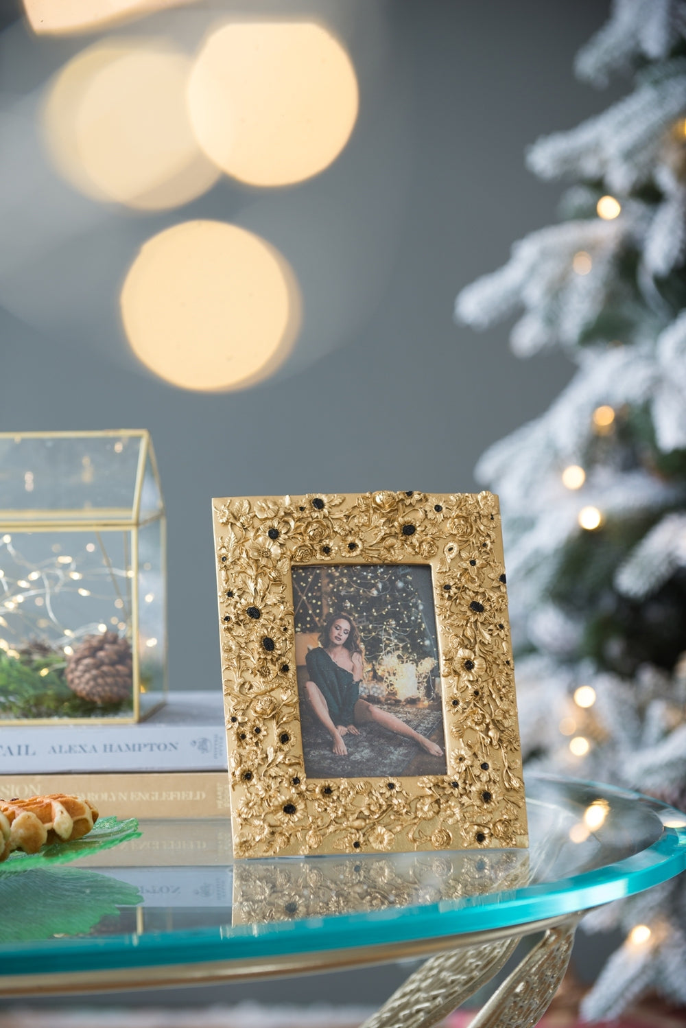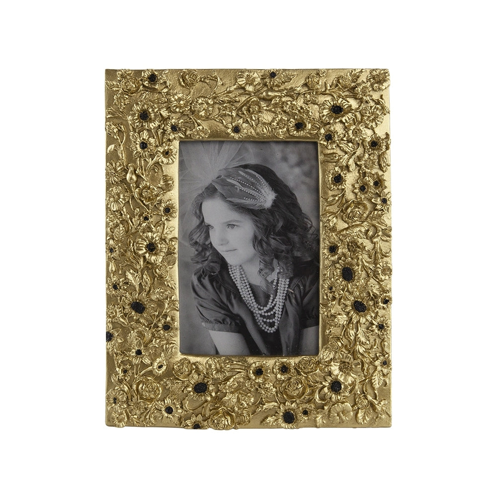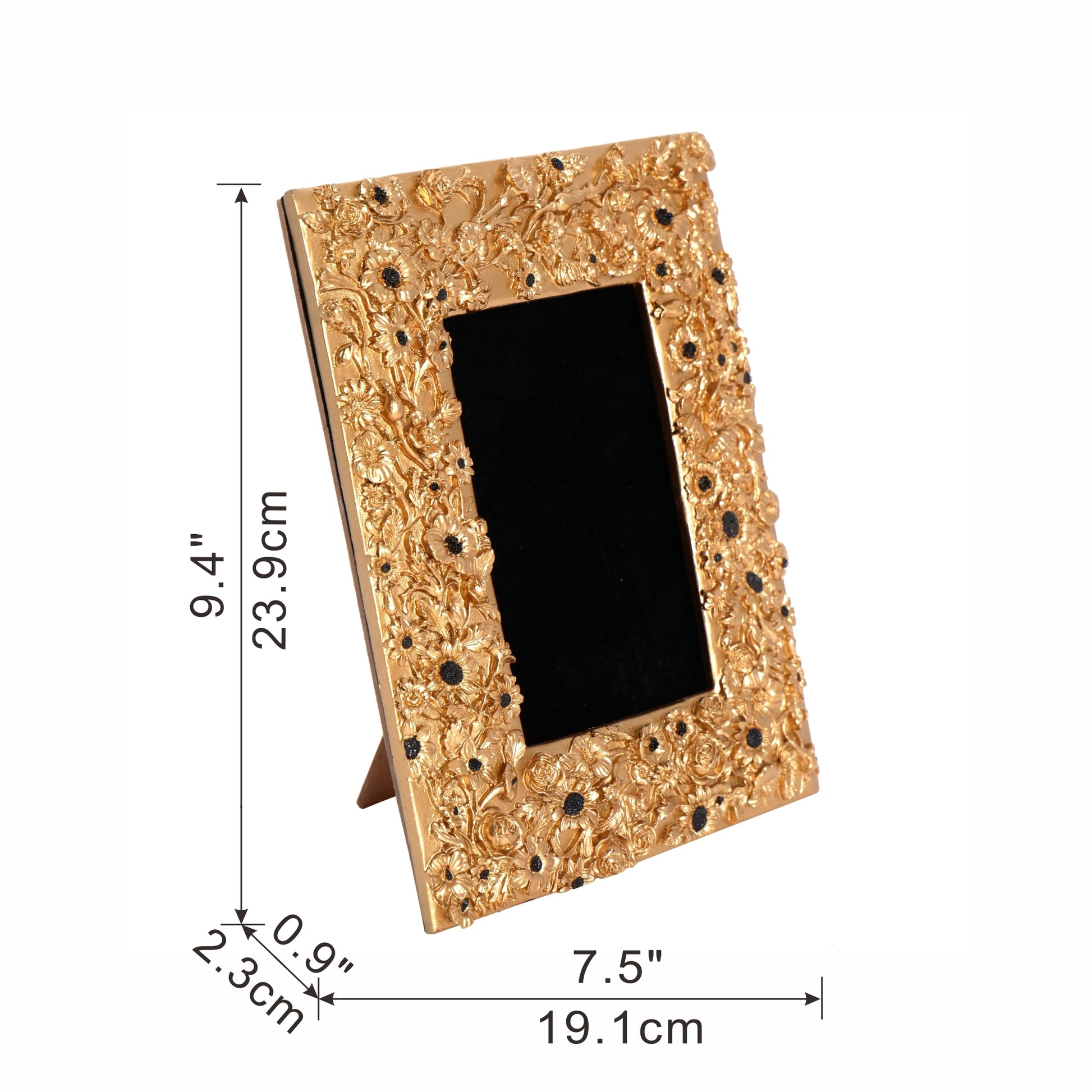 7.5X1X9.5" Vintage Gold Photo Frame With Flower Design Gold Black Antique,Art Deco,Luxury,Retro,Vintage Polyresin