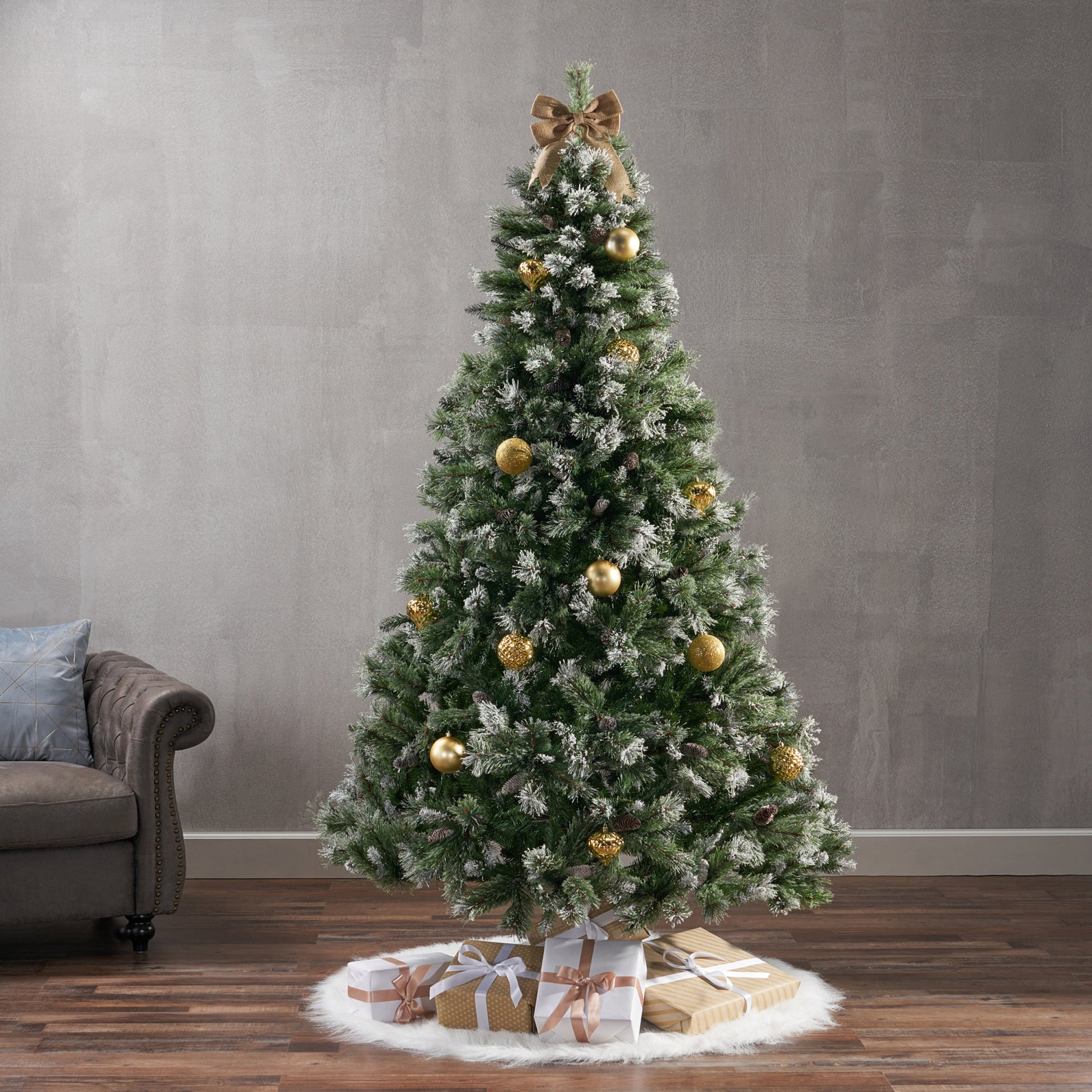 7' Brilste Mixed Hinged Tree With Snow And Glitter And 78 Frosted Pine Cones And Dia:49 Green Pvc