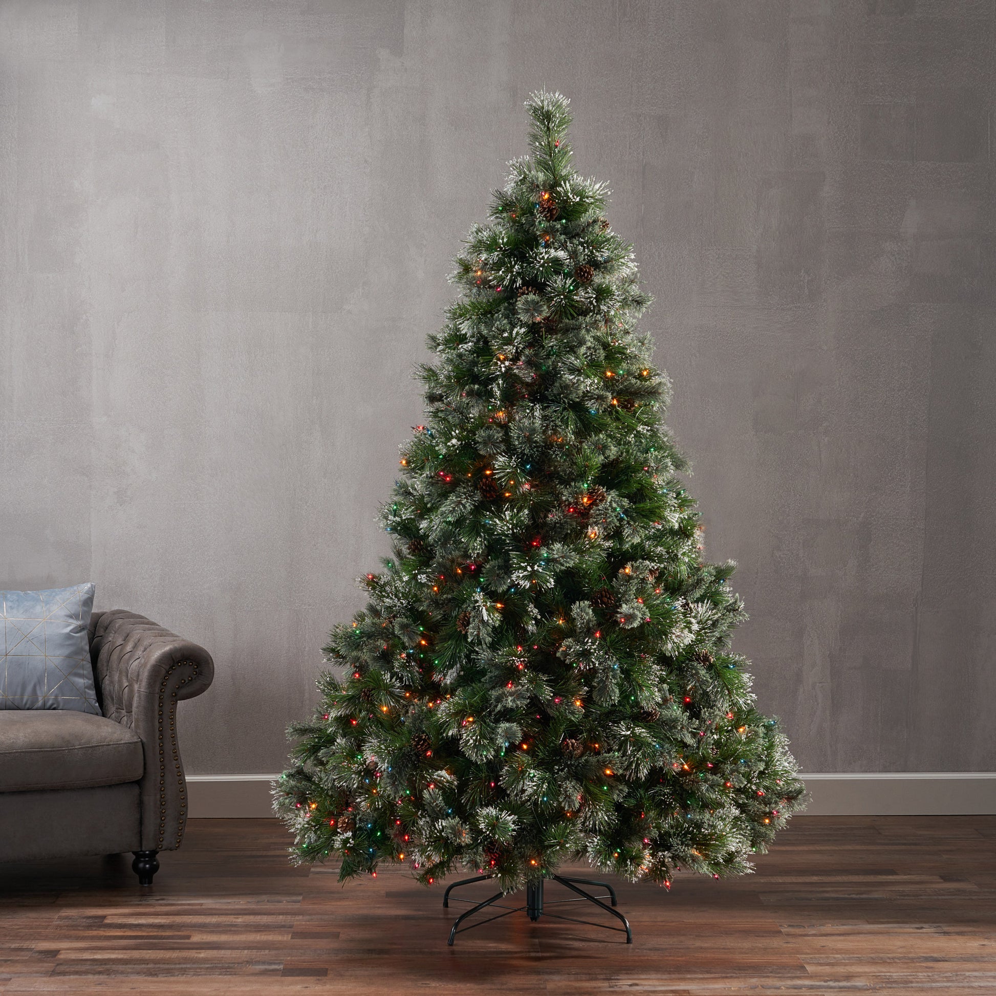 7' Faux Cashmere And Snow Bristle Mixed Tree With 75Pine Cones And 900Multi Lights Ul,1233Tips,D Green Pvc