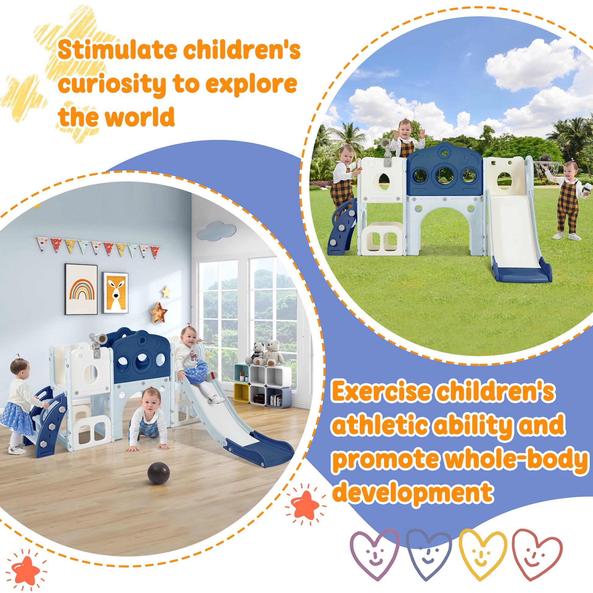 7 In 1 Toddler Slide Set, Freestanding Space Set With Slide, Kids Slide Playset Structure, Arch Tunnel And Basketball Hoop, Toy Storage Organizer For Toddlers, Kids Climbers Playground Blue 50 99 Lbs Cute 1 To 2 Years Hdpe Indoor & Outdoor Use