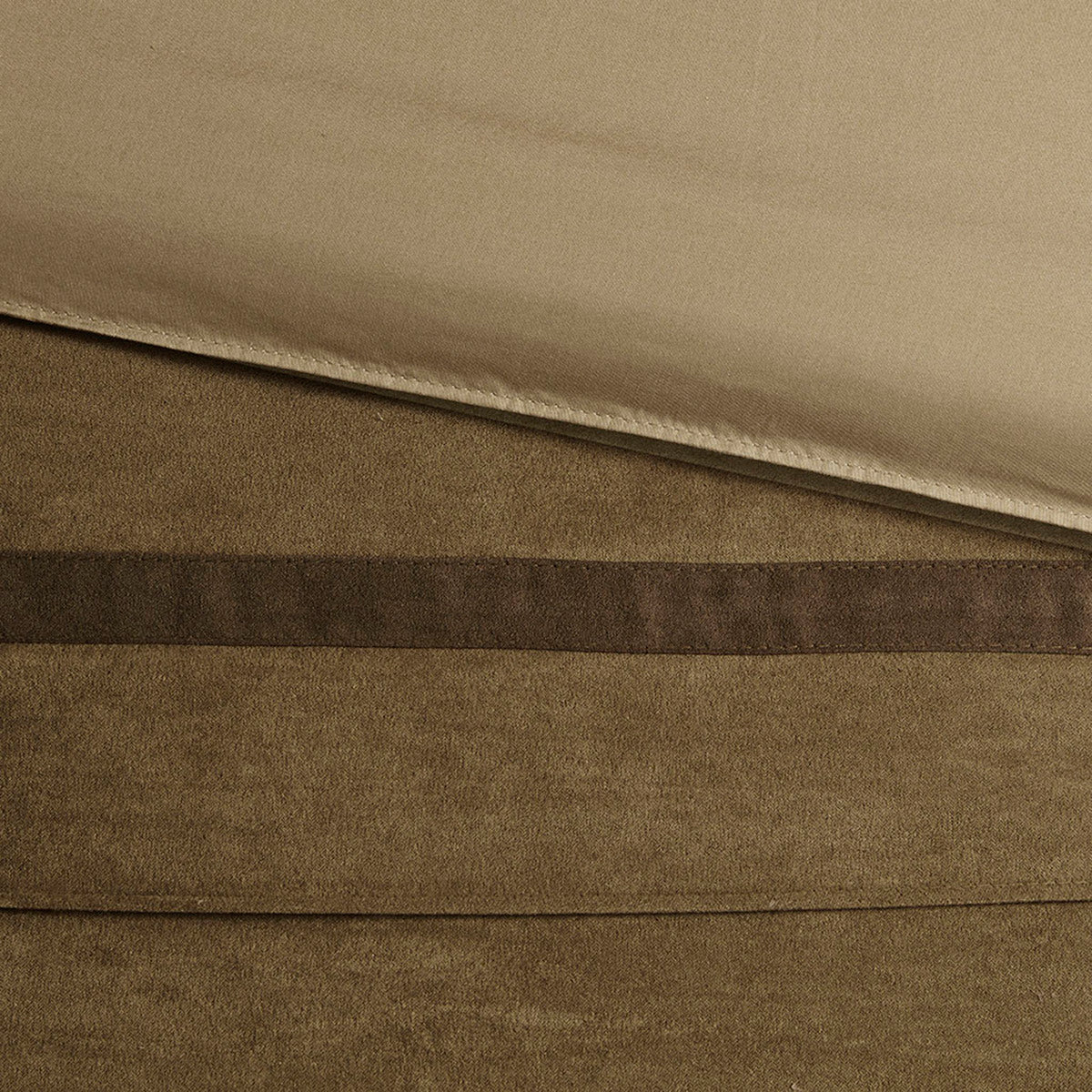 7 Pc Pieced Faux Suede Comforter Set Natural Full Full Natural Polyester