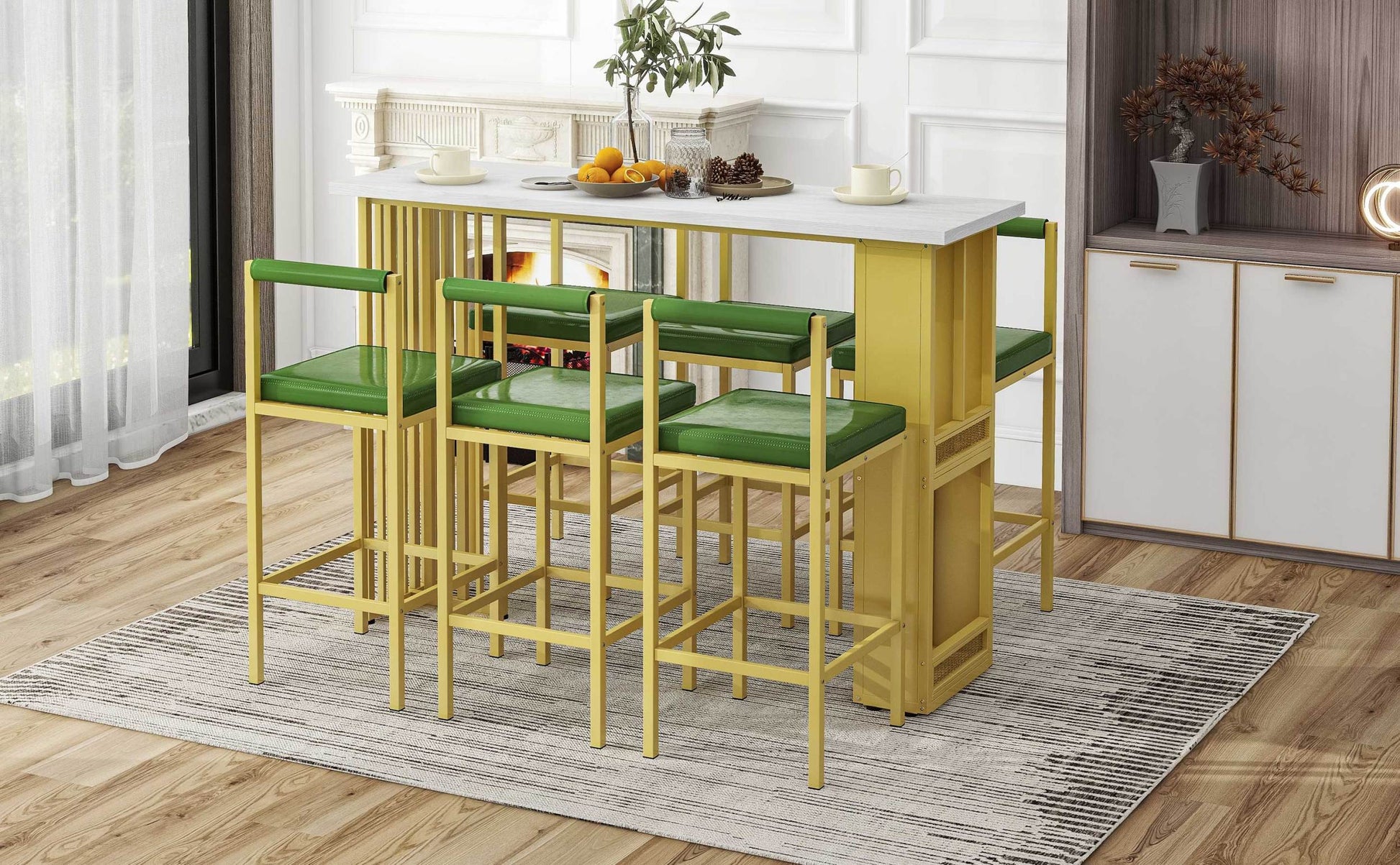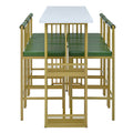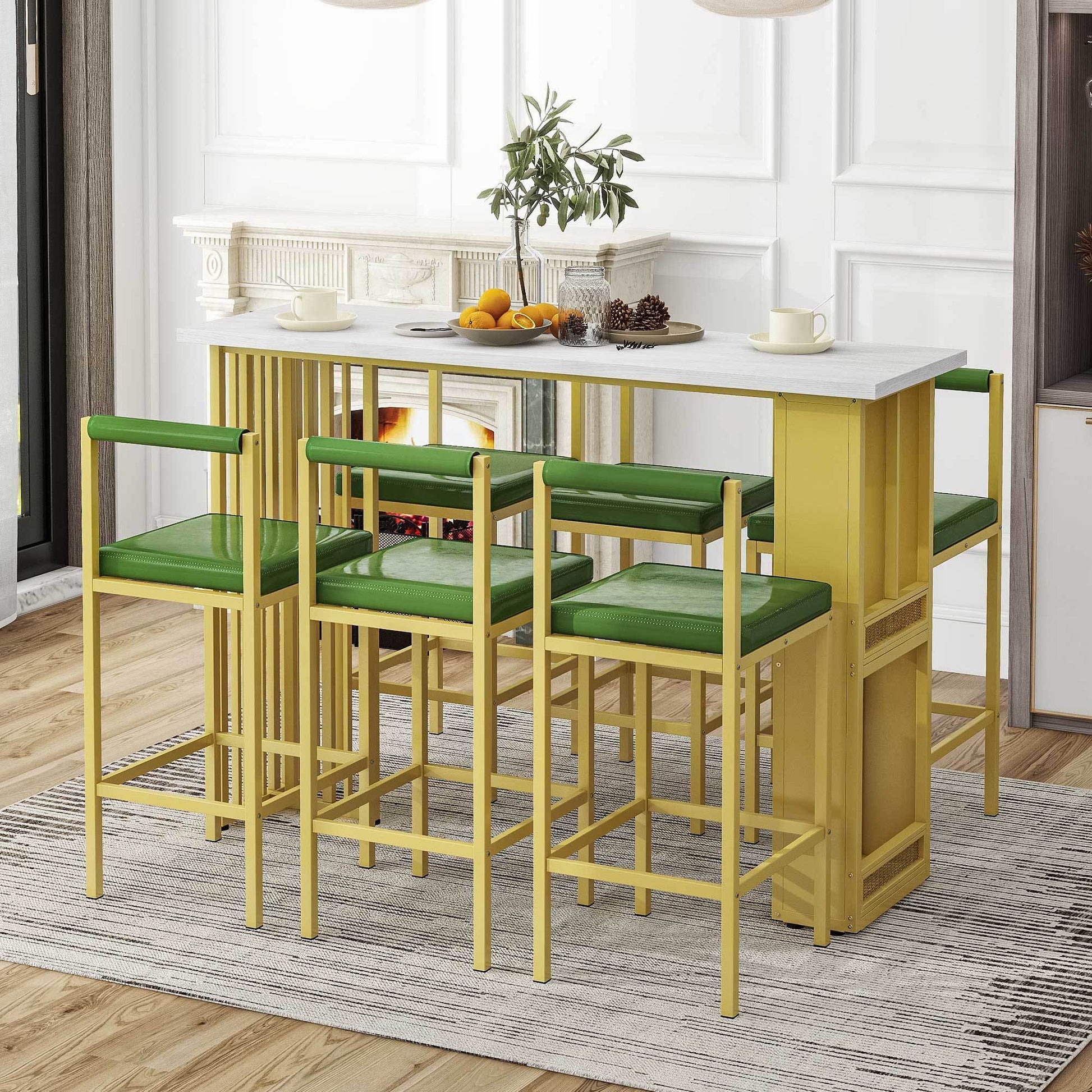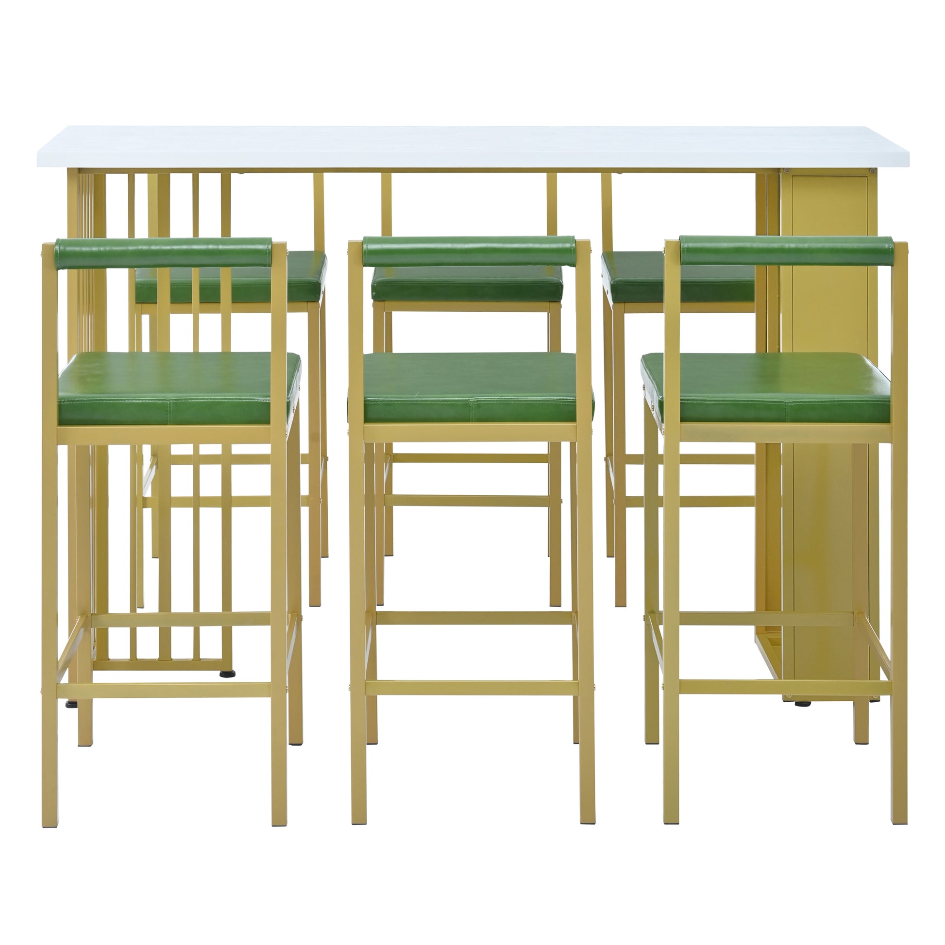7 Piece Multi Functional Modern Counter Height Dining Bar Table Set With Open Shelves And 6 Upholstered Stools For Dining Room, Bar And Cafe White And Green White Green Mdf Metal
