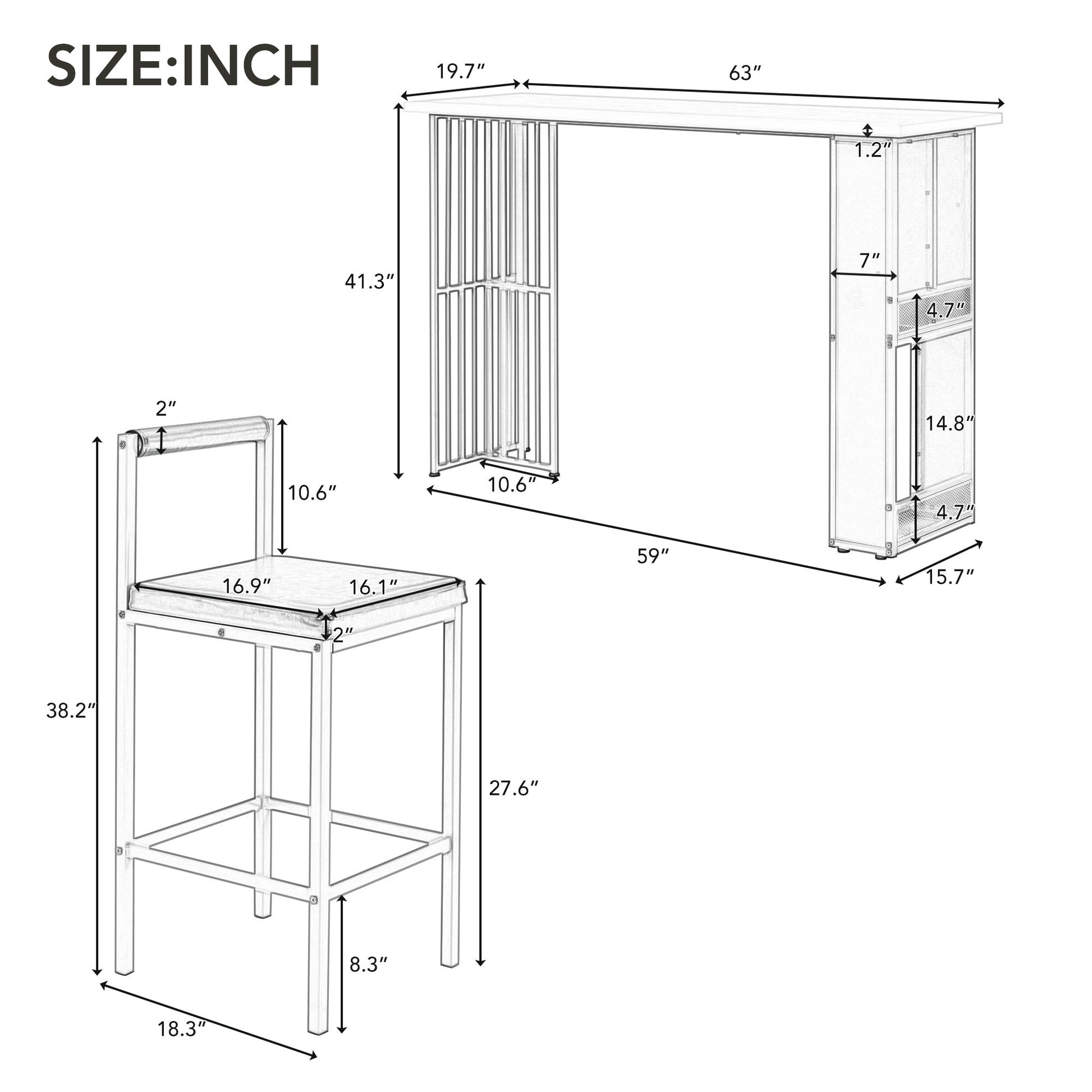 | Bar Table | 63"L x 19.7"w x 41.3"h, 45.4 LBS |