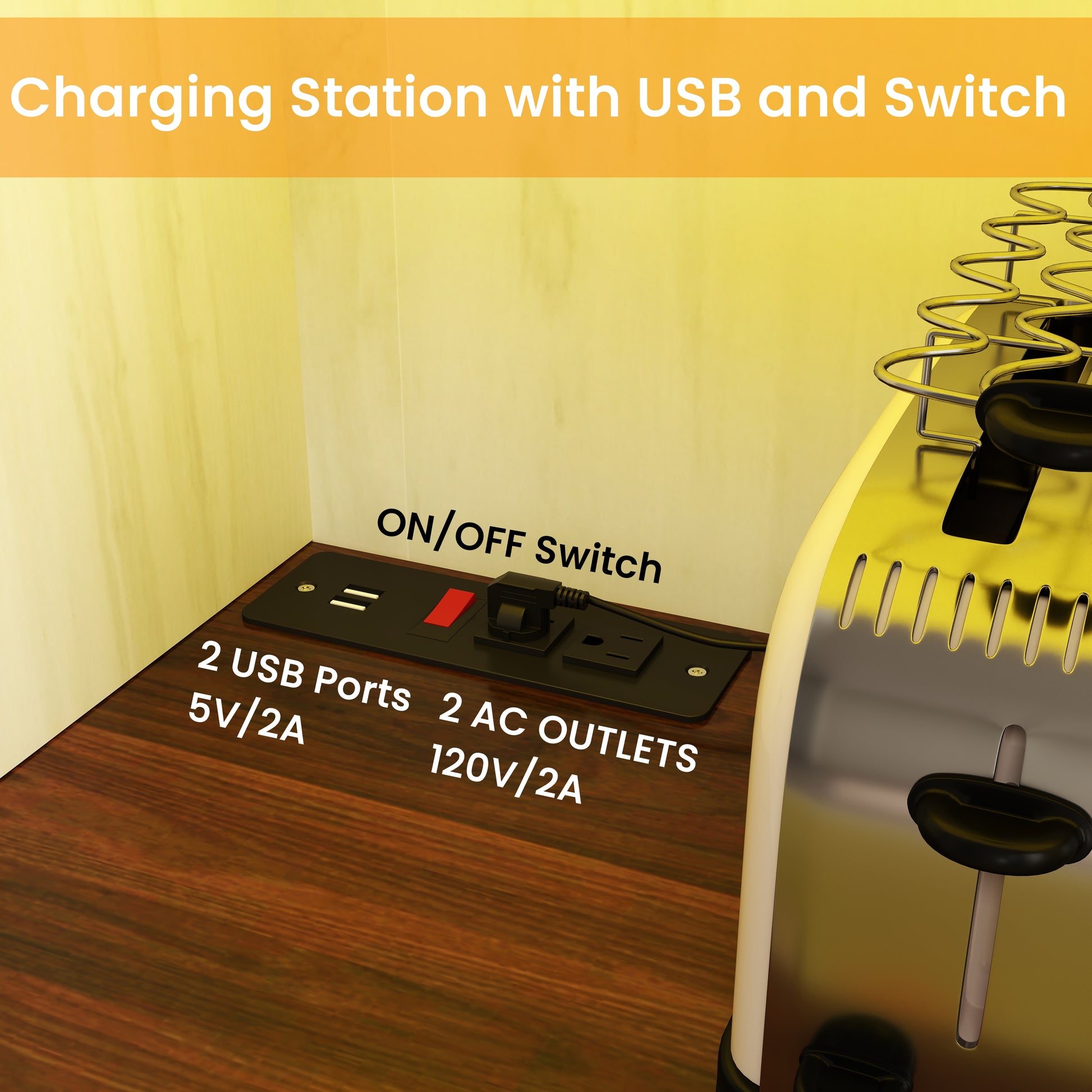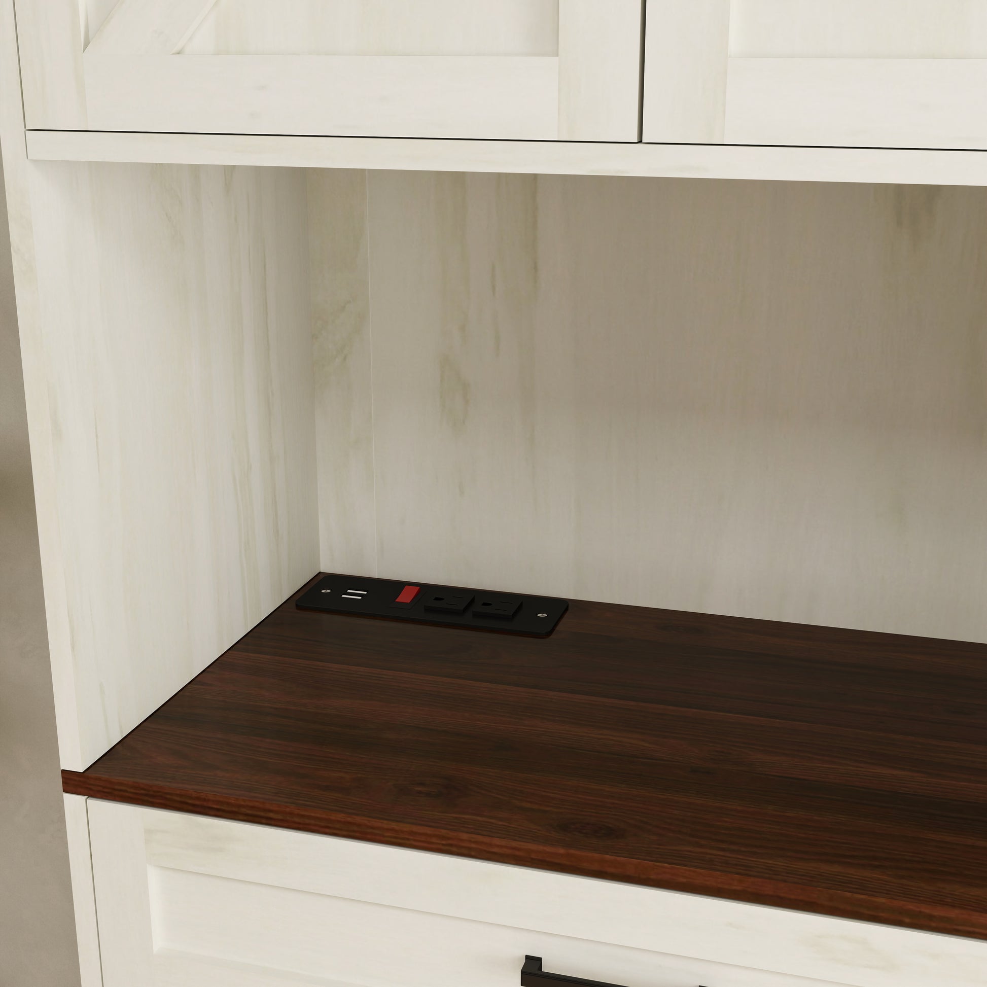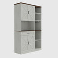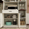 70.87'' Multifunctional Farmhouse Kitchen Pantry Sideboard With Cabinet And Drawer, Kitchen Buffet With Hutch And Glass Holder, Microwave Stand With Charging Station For Kitchen And Dining Room