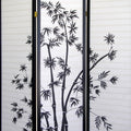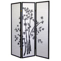 70" Tall 3 Panel Screen Room Divider, Bamboo Design With Black Finish Black Wood