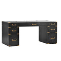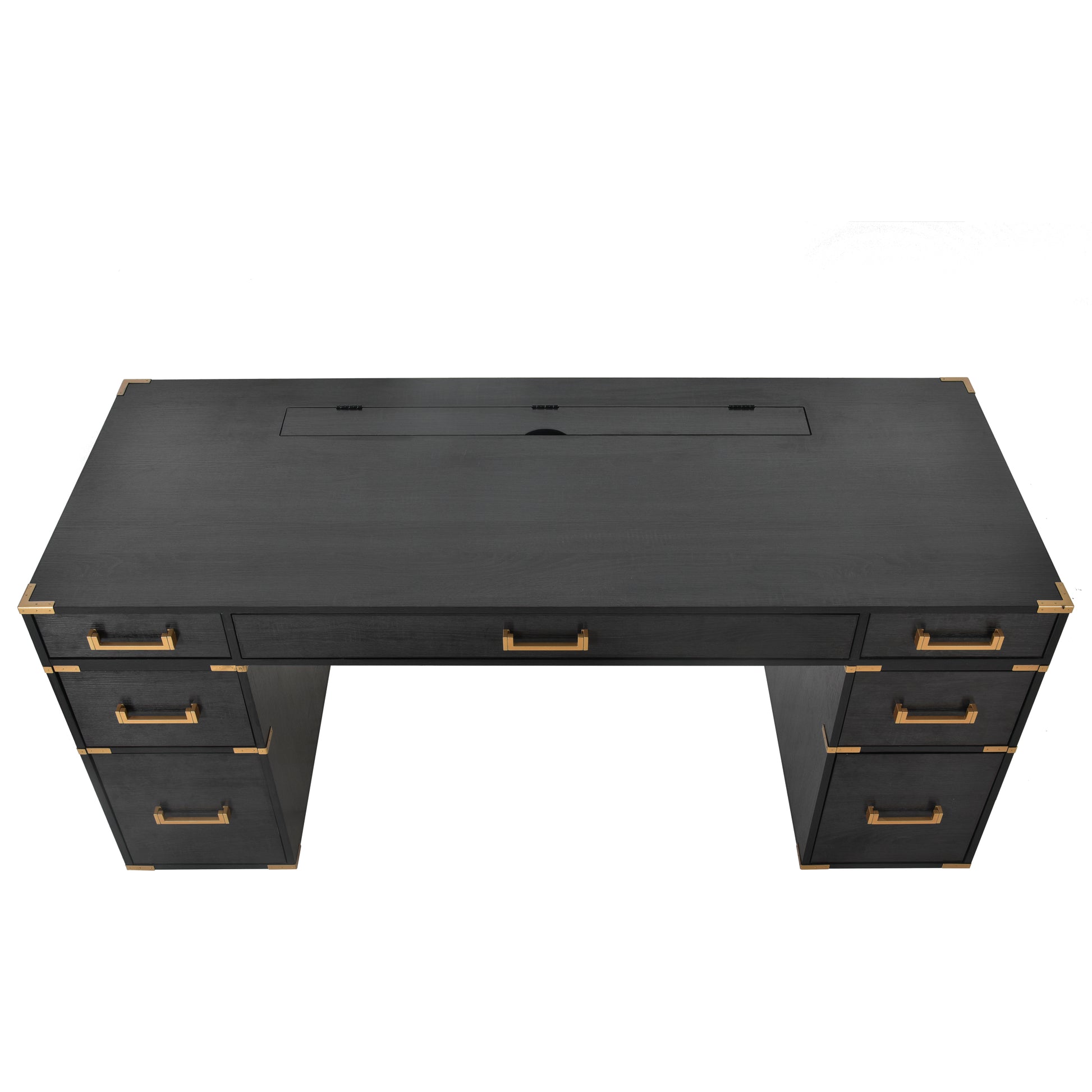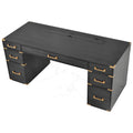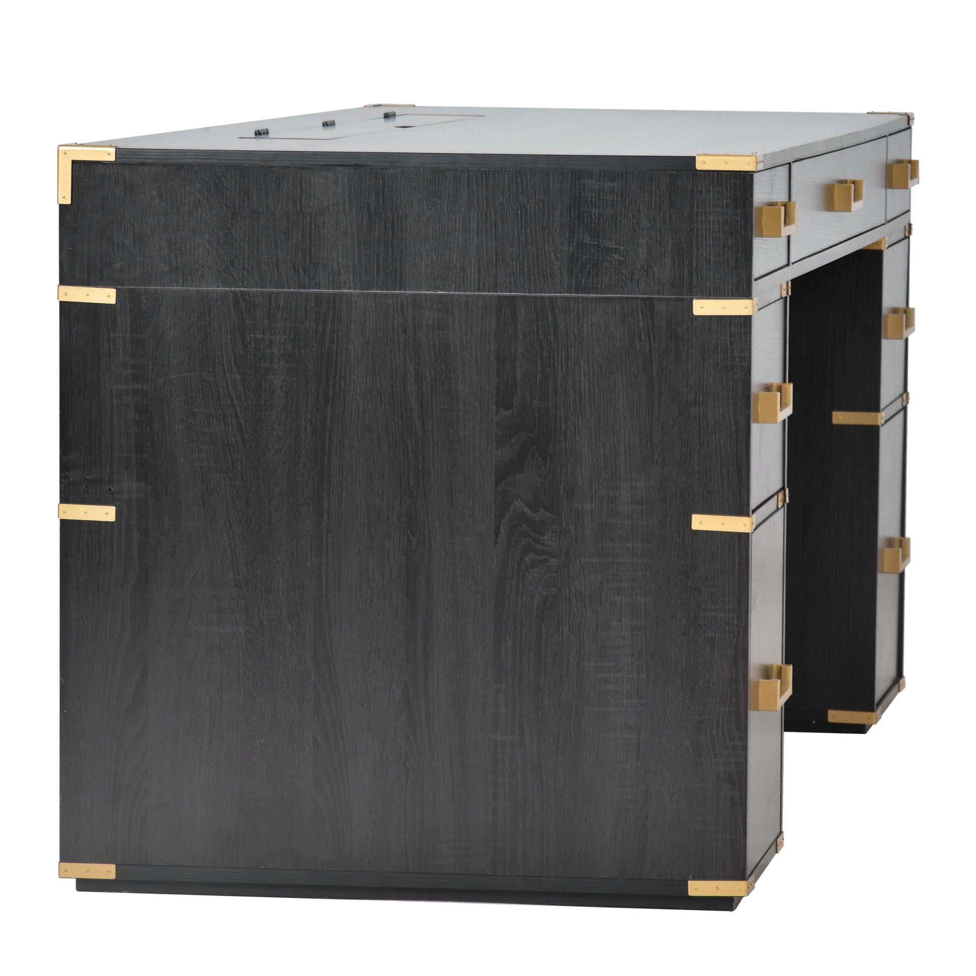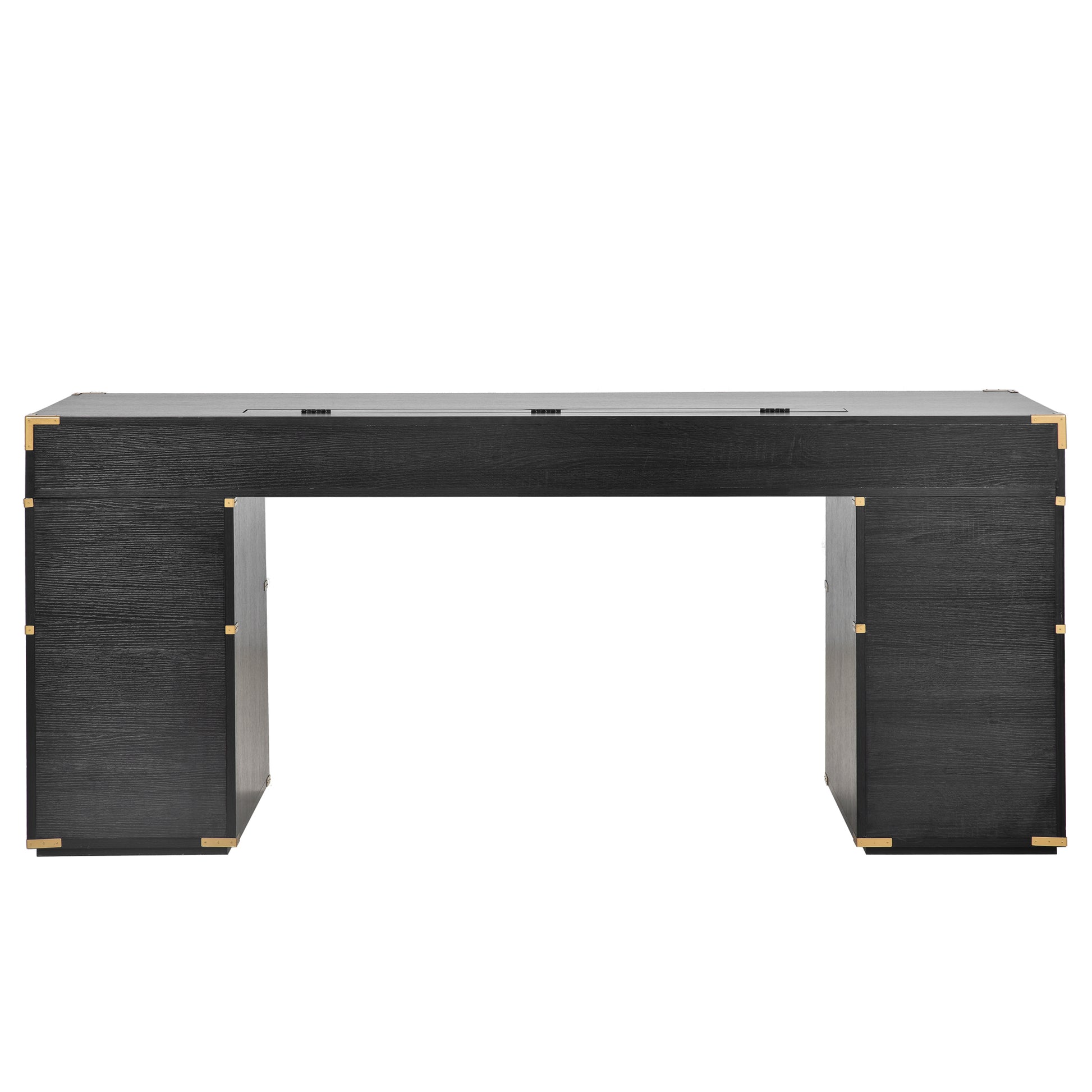 70"Classic And Traditional Executive Desk With Metal Edge Trim ,Writing Desk With 2 File Drawers,Usb Ports And Outlets,Desk With Hidden Compartment For Living Room,Home Office,Study Room,Black Black Gold Mdf Metal