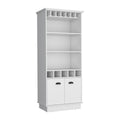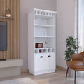 70"H Bar Cabinet With Wine Rack, Upper Glass Cabinet, Three Open Storage Shelves And One Cabinet,White White Particle Board Particle Board