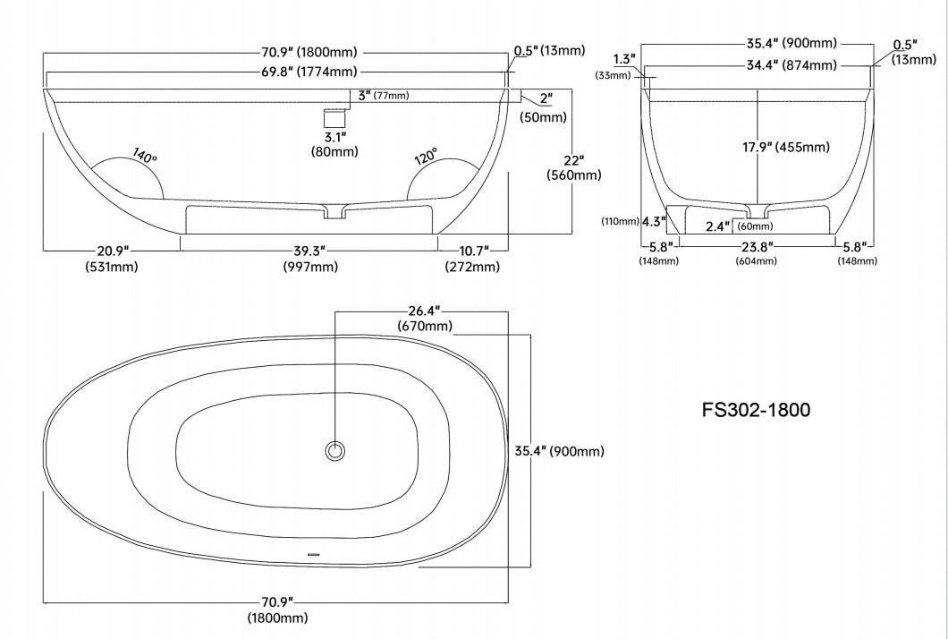 71" Gloss White Artificial Stone Solid Surface Stone Bathroom Freestand Bathtub Gloss White Oval Bathroom Freestanding Tubs 61 69 In Luxury,Modern Soaking Center Solid Surface Solid Surface