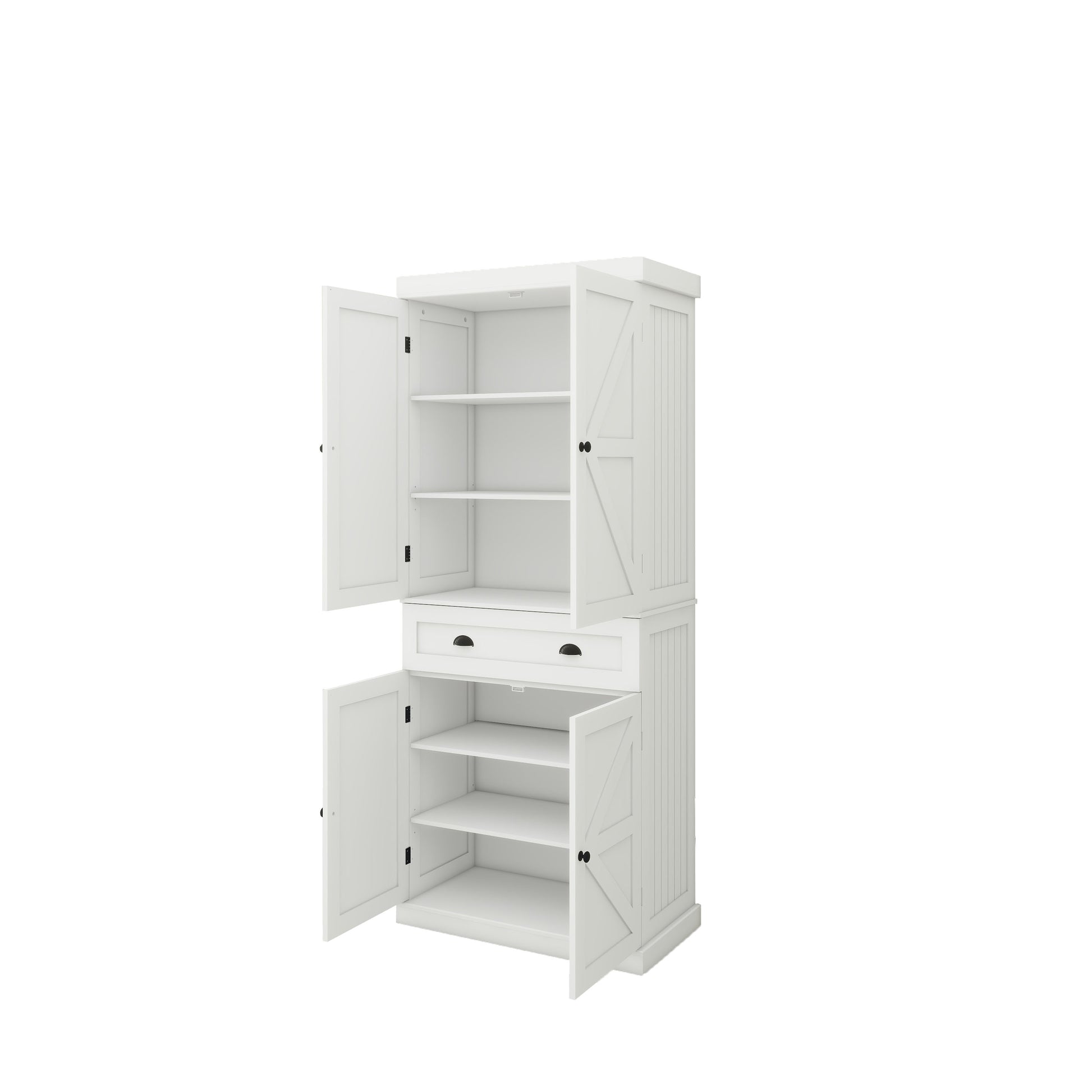 71" Kitchen Pantry Storage Cabinetwith 4 Doors, Drawer, 2 Adjustable Shelves, Freestanding Cupboard For Dining Room Living Room, Laundry White White Mdf