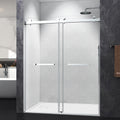 72*76" Double Sliding Frameless Shower Door Brushed Nickel Without Buffer Brushed Nickel Glass