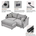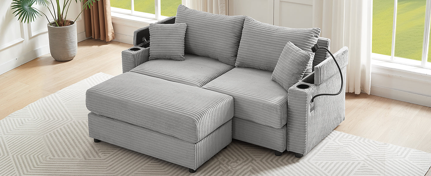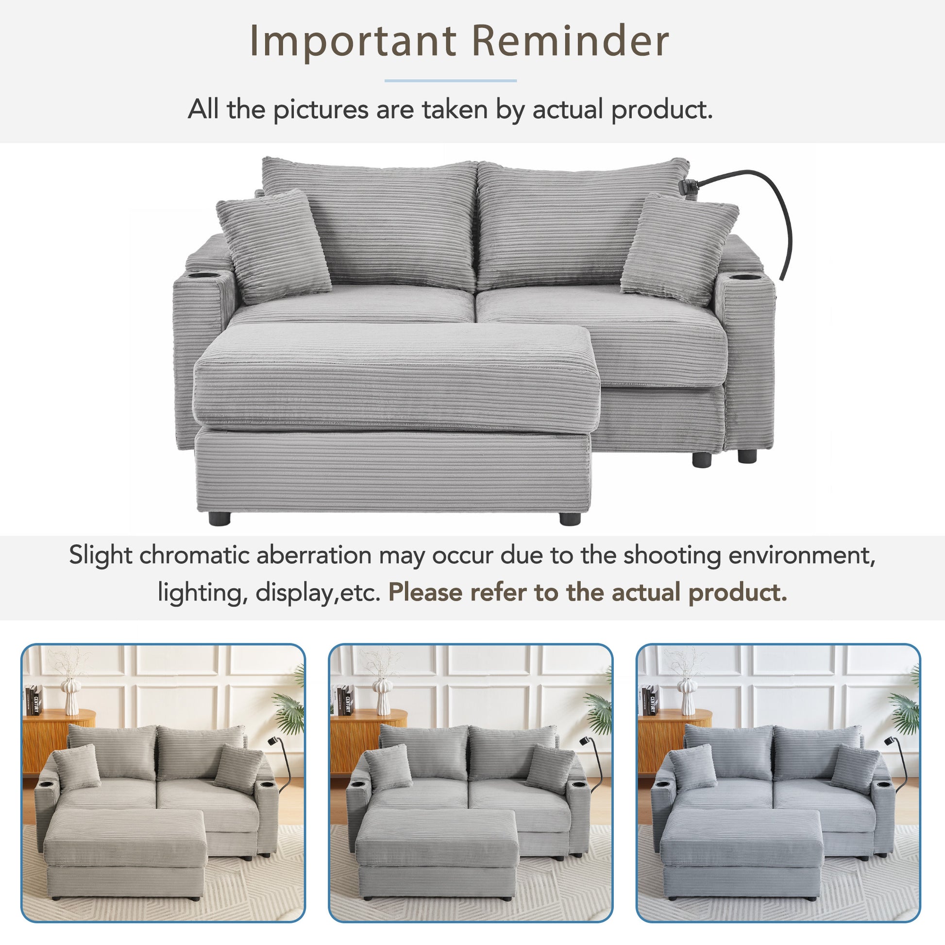 72.8" Modern Style Loveseat Sofa Sectional Sofa Couch With Storage Space, A Movable Ottoman, Two Usb Ports, Two Cup Holders, A Phone Holder For Living Room, Gray Gray Foam Corduroy 3 Seat