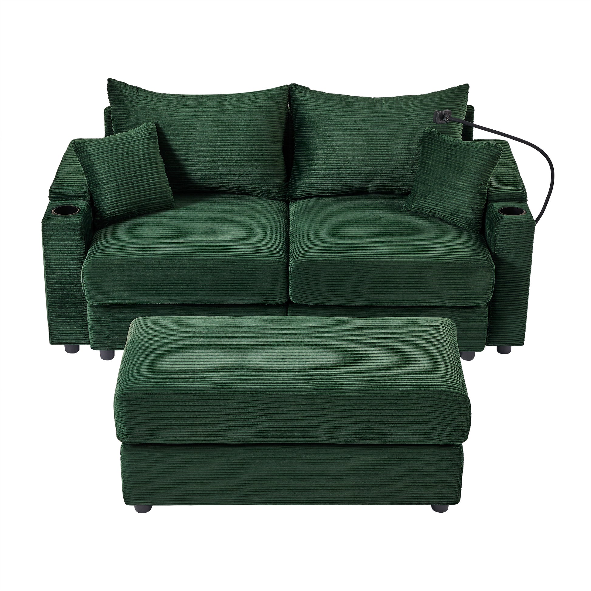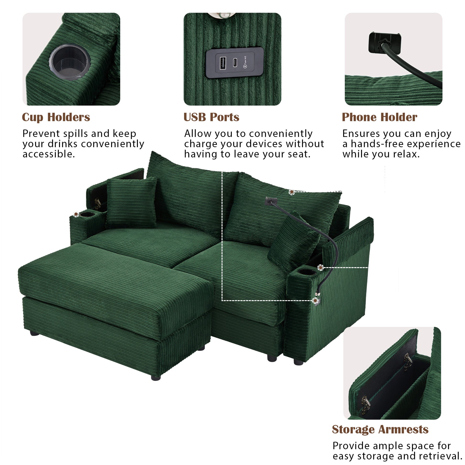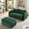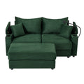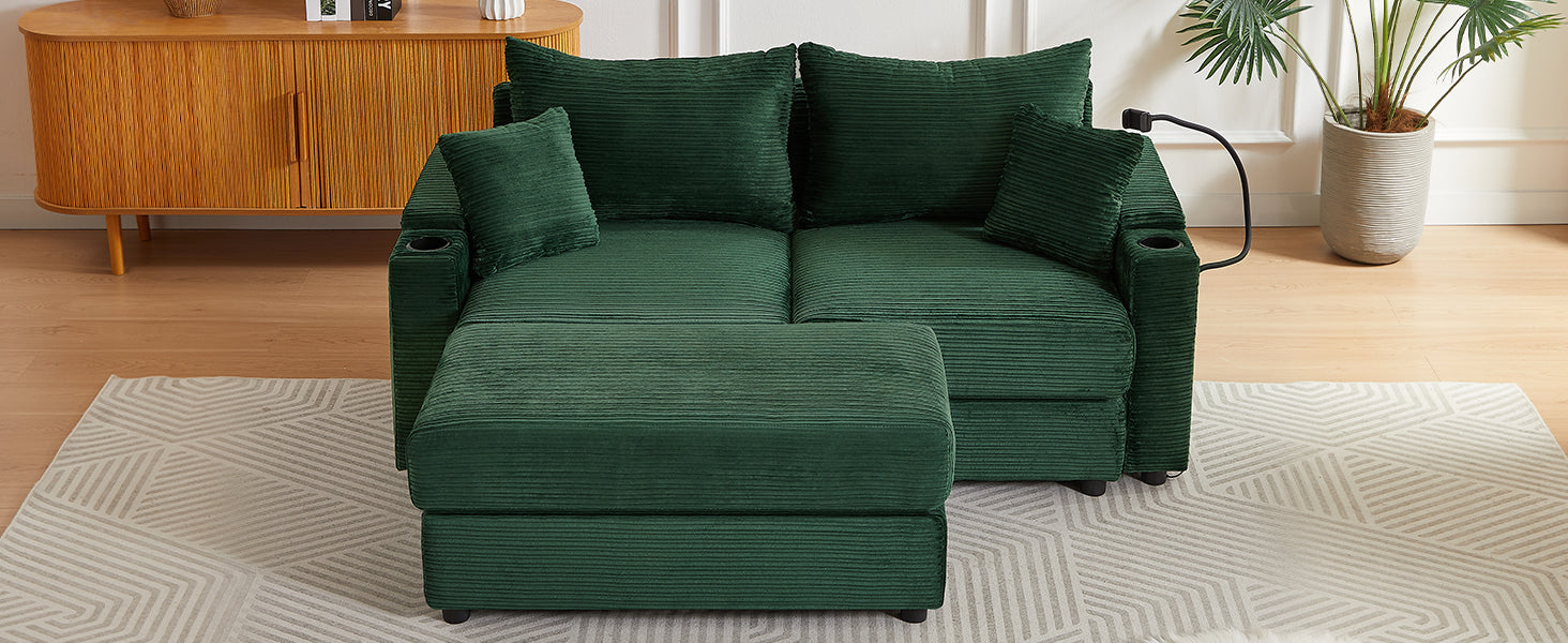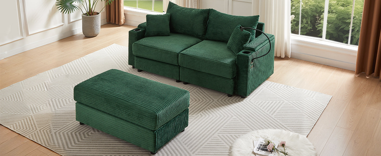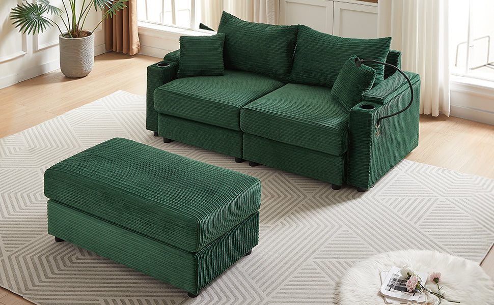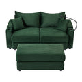 72.8" Modern Style Loveseat Sofa Sectional Sofa Couch With Storage Space, A Movable Ottoman, Two Usb Ports, Two Cup Holders, A Phone Holder For Living Room, Green Green Foam Corduroy 3 Seat
