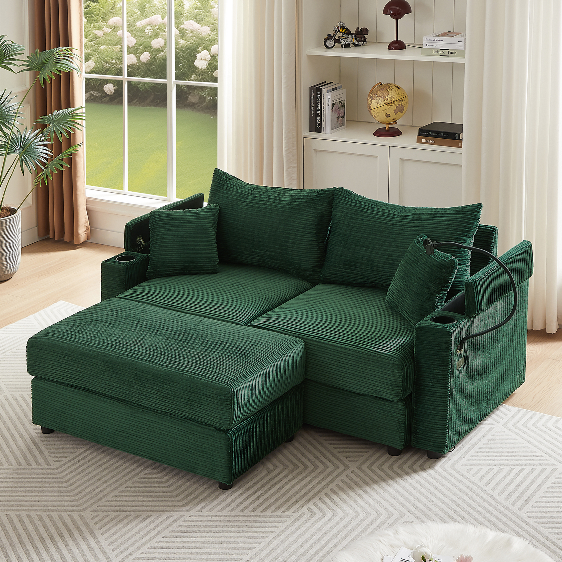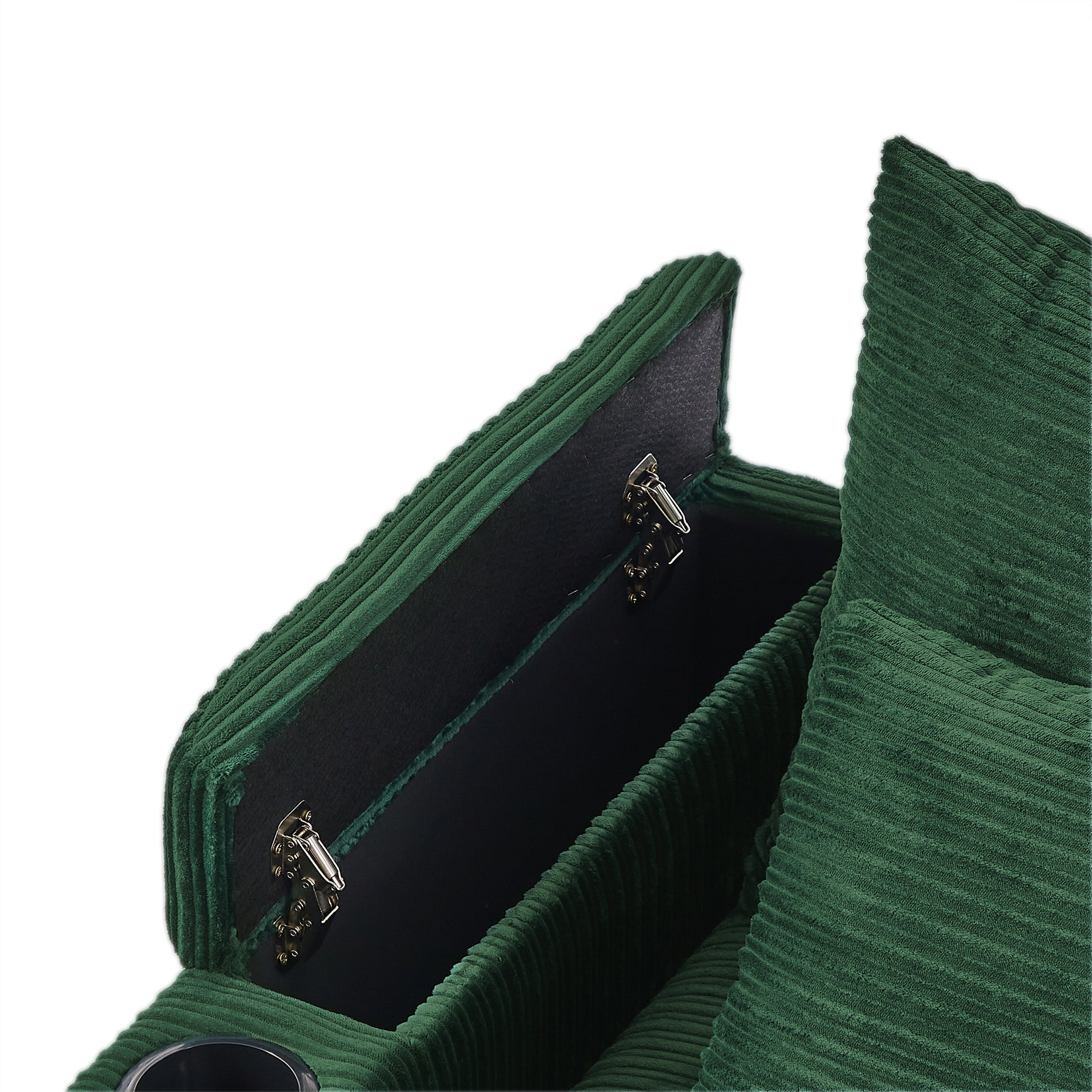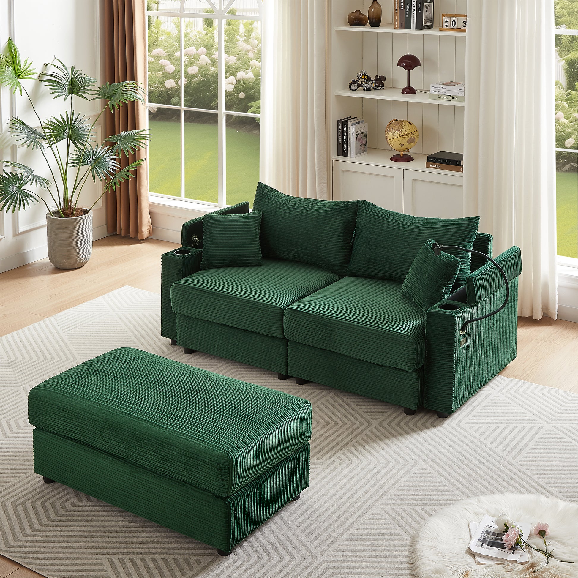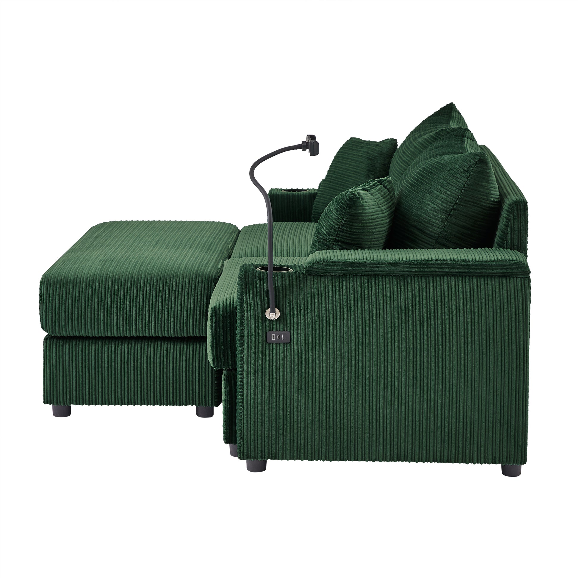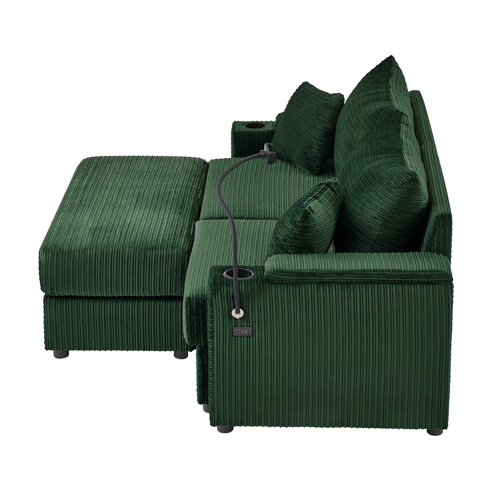 72.8" Modern Style Loveseat Sofa Sectional Sofa Couch With Storage Space, A Movable Ottoman, Two Usb Ports, Two Cup Holders, A Phone Holder For Living Room, Green Green Foam Corduroy 3 Seat