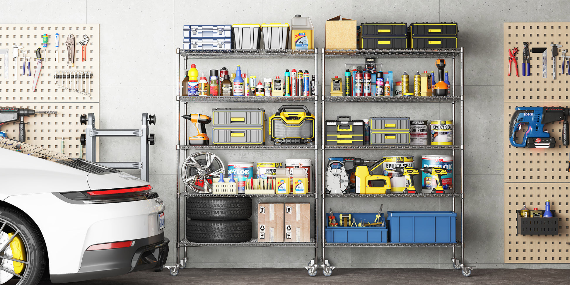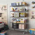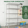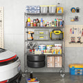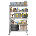 72" H Metal Large Storage Shelves With Wheels, Metal Shelving With Chrome, Adjustable 5 Tier Sturdy Metal Shelves For Storage Shelving,Kitchen,Garage 5 Silver Primary Living Space Metal Modern