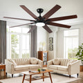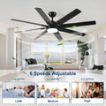 72 Inch Large Ceiling Fans With Lights And Remote, Indoor Outdoor Black Modern Ceiling Fan For Kitchen Living Room Patio, 6 Speed Reversible Quiet Dc Motor, Dual Finish 8 Blades Black Dark Walnut