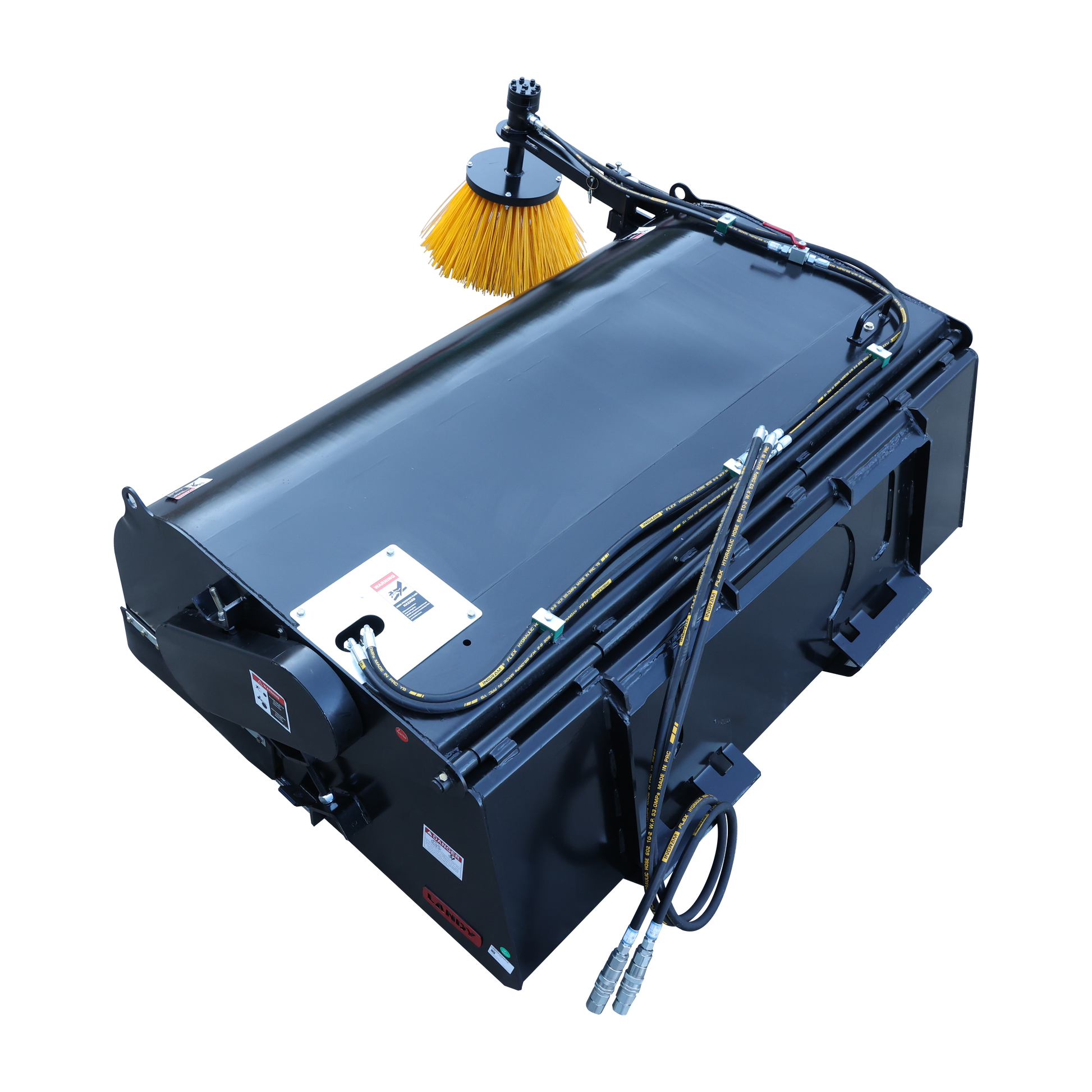 72" Skid Steer Pick Up Box Broom Sweeper With Edge Brush Black Steel
