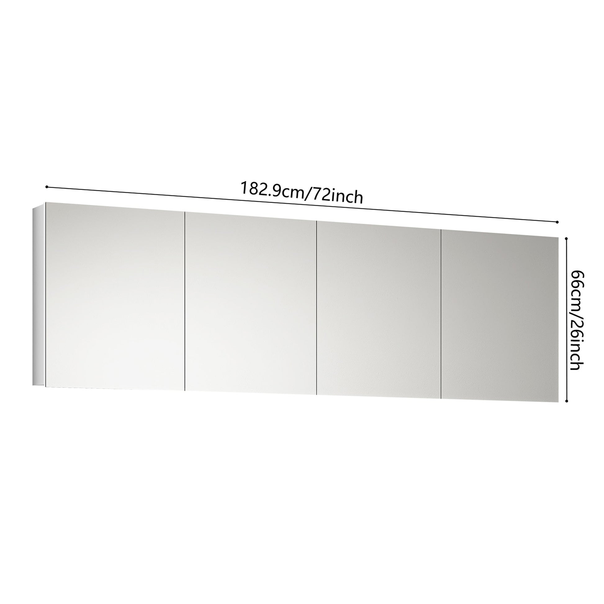 72'' W X 26'' H Bathroom Mirror Medicine Cabinet Wooden Door Medicine Cabinets For Bathroom, Wall Mounted Recessed Or Surface, Bathroom Mirror With Storage White Engineered Wood