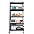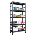 72"H Heavy Duty Storage Shelves Adjustable 5 Tier Metal Shelving Unit With Wheels For 1750Lbs Load Kitchen, Garage, Pantry, And More 5 Black Standard Vertical Kitchen Open Back Metal Antique Adjustable Shelves Metal Metal