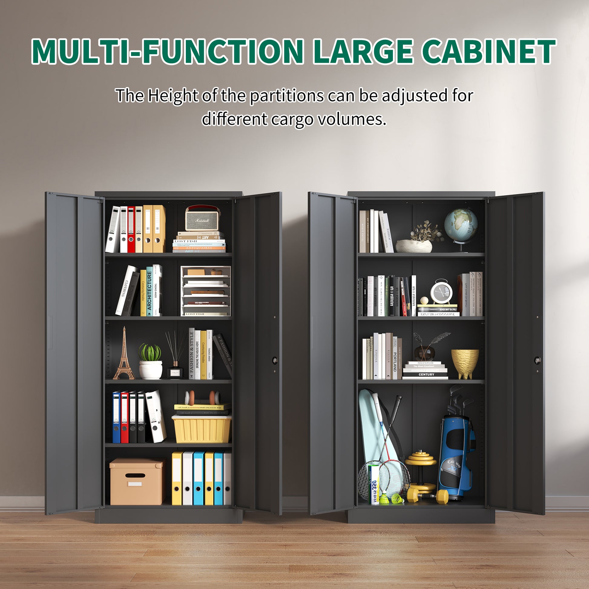 72"H Metal Garage Storage Cabinet, Black Tool Steel Locking Cabinet With Doors And 4 Shelves, Tall Cabinets For Garage Storage Systems Lockable File Cabinet For Home Office, Classroom Pantry Filing