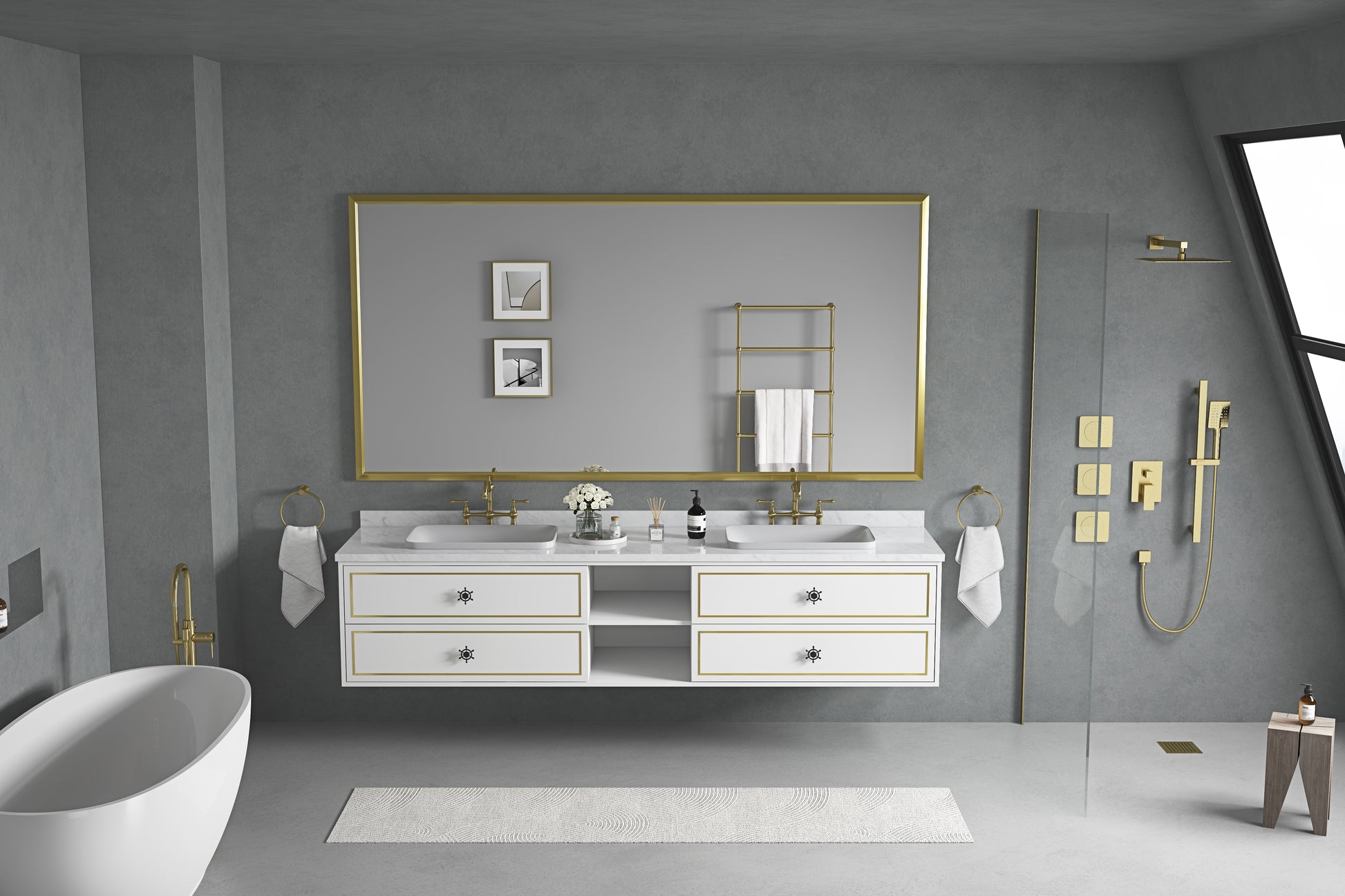 72In. W X 48In. H Metal Framed Bathroom Mirror For Wall, X Inch Rectangle Mirror, Bathroom Vanity Mirror Farmhouse, Anti Rust, Hangs Horizontally Or Vertiy Gold Aluminum