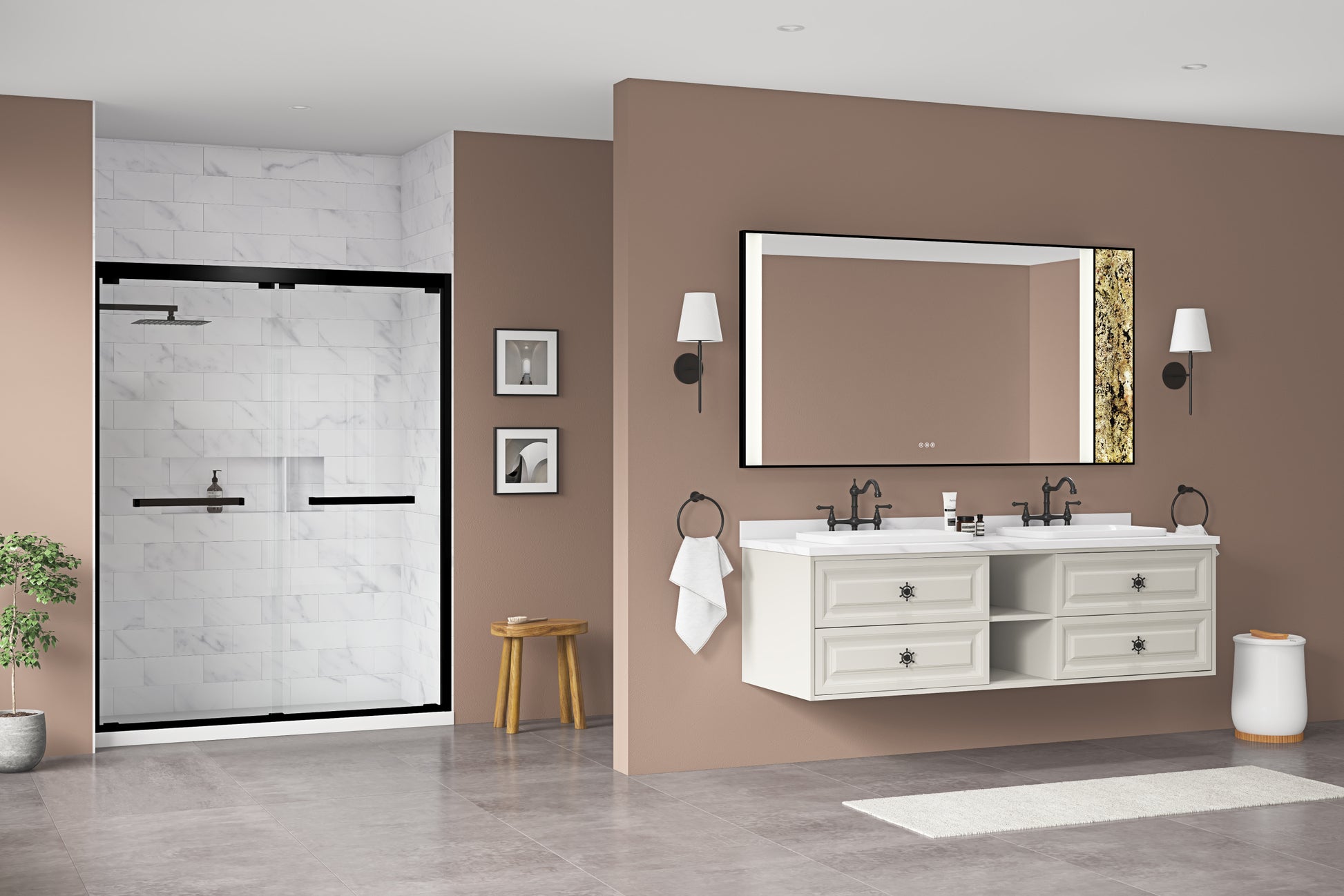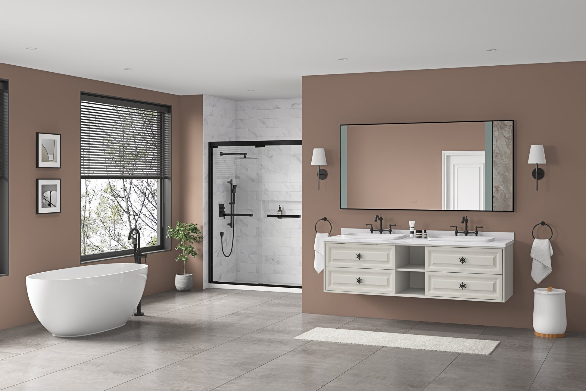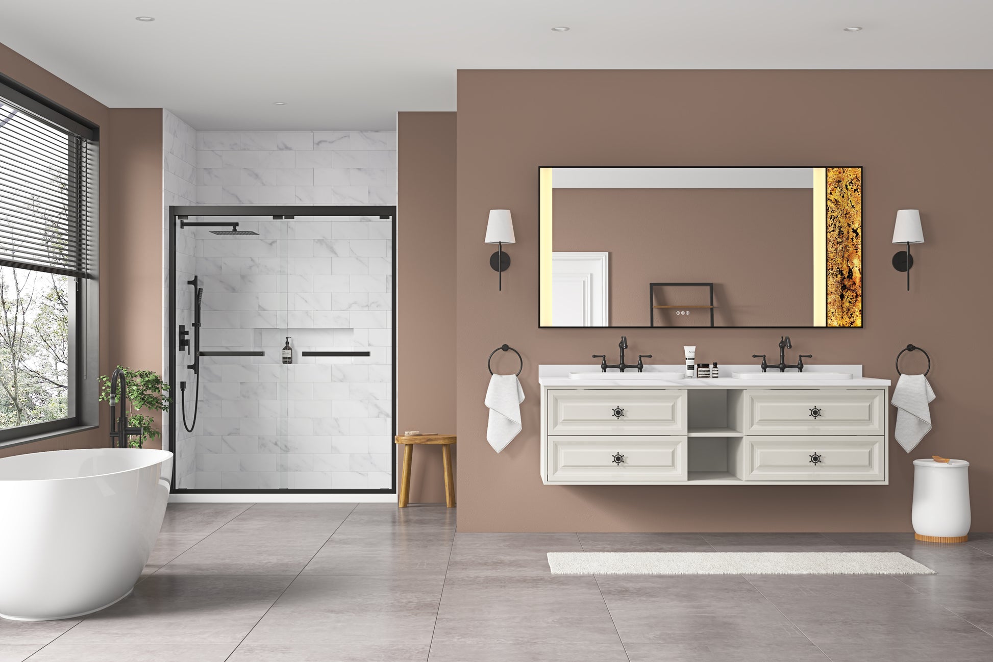 72X 36Inch Led Mirror Bathroom Vanity Mirror With Back Light, Wall Mount Anti Fog Memory Large Adjustable Vanity Mirrornatural Stone Decoration Decoration Follows Led Changes Matte Black Aluminium