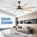 76 Inch S Remote Control 8 Solid Wood Blades With 18W Dimmable Led Light Black Metal & Wood