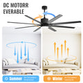 76 Inch With 18W Dimmable Led Light Remote Control 8 Solid Wood Blades Black For Living Room Black Metal & Wood