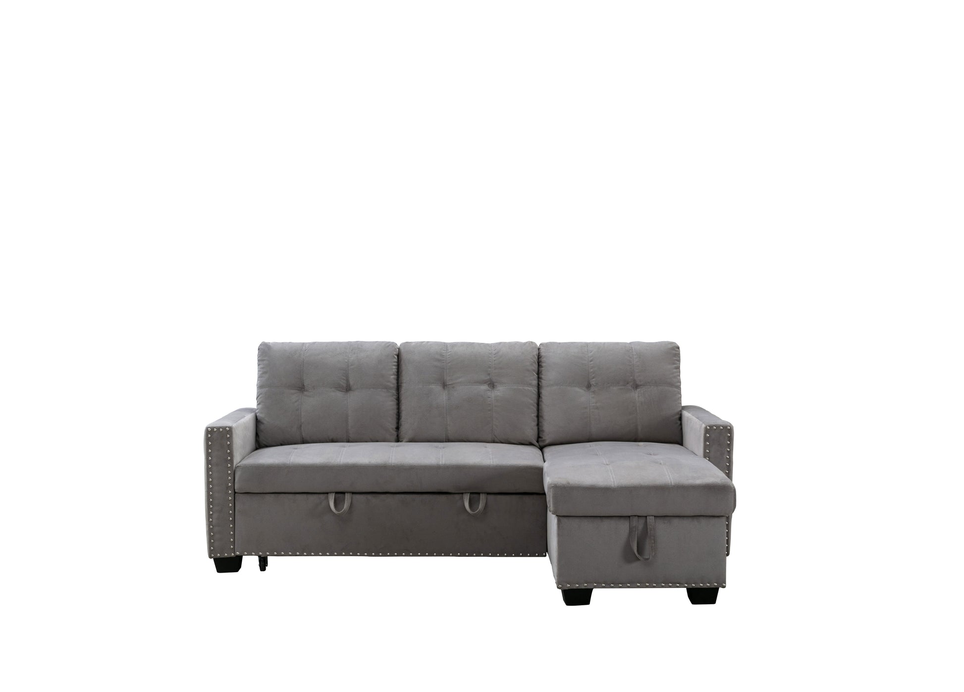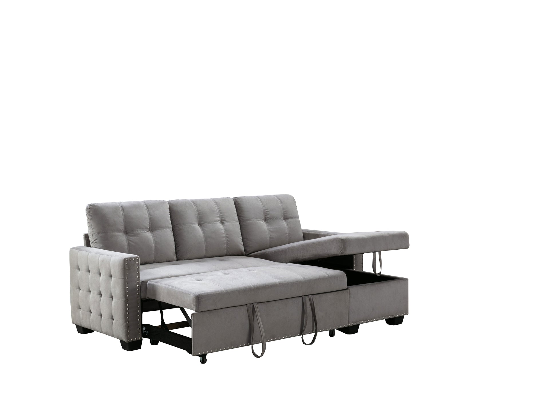 77 Inch Reversible Sectional Storage Sleeper Sofa Bedl Shape 2 Seat Sectional Chaise With Storageskin Feeling Velvet Fabric ,Light Grey Color For Living Room Furniture Light Grey Fabric 3 Seat