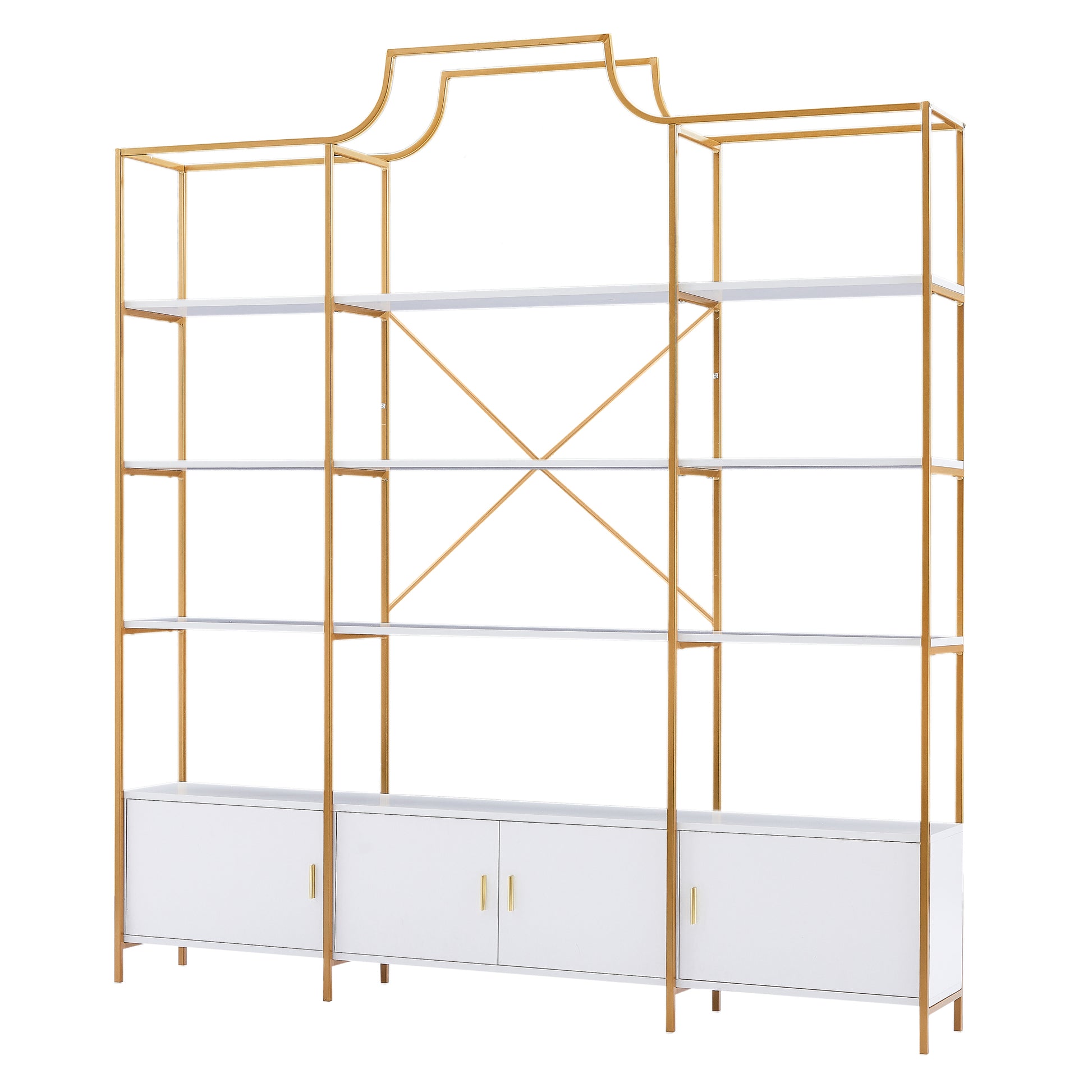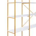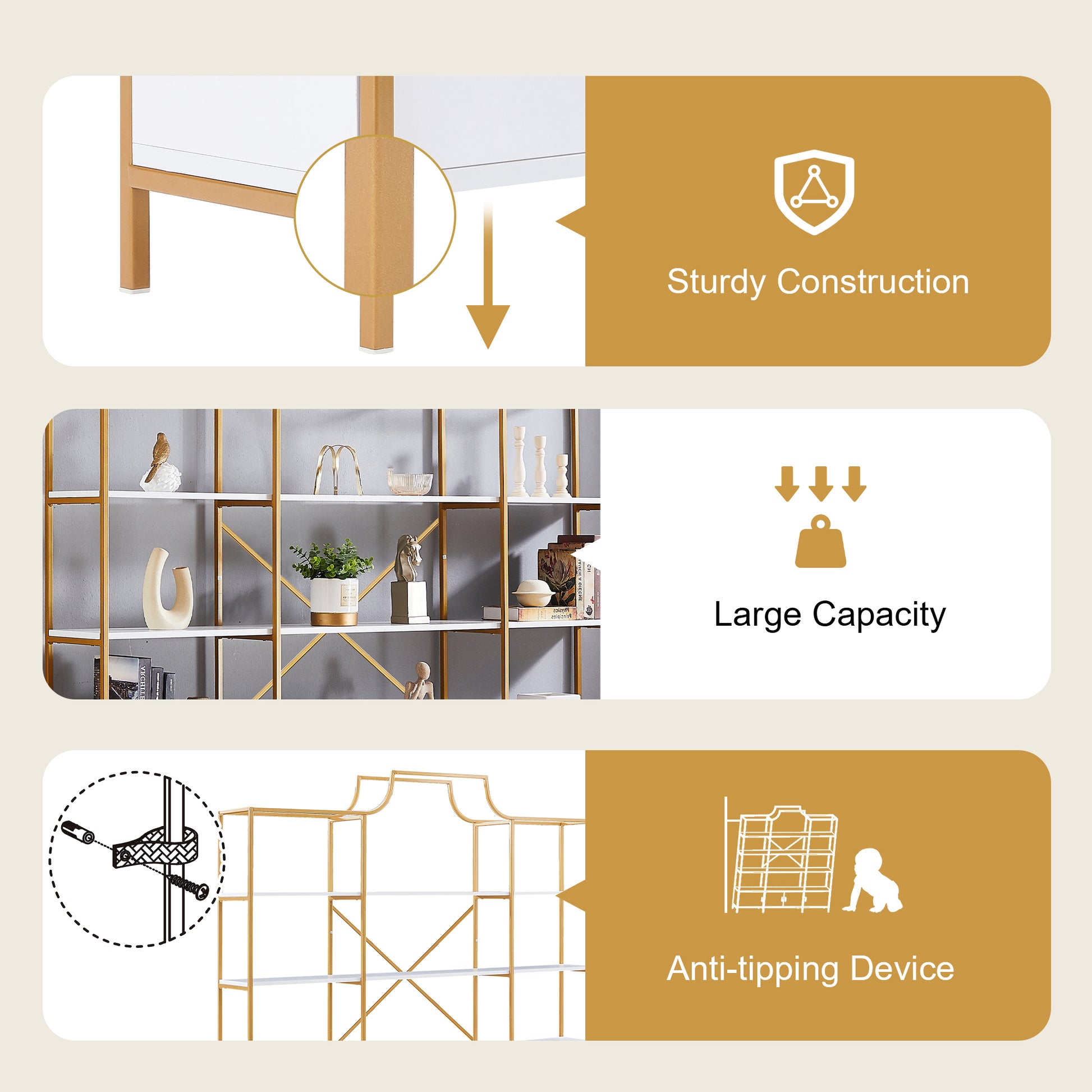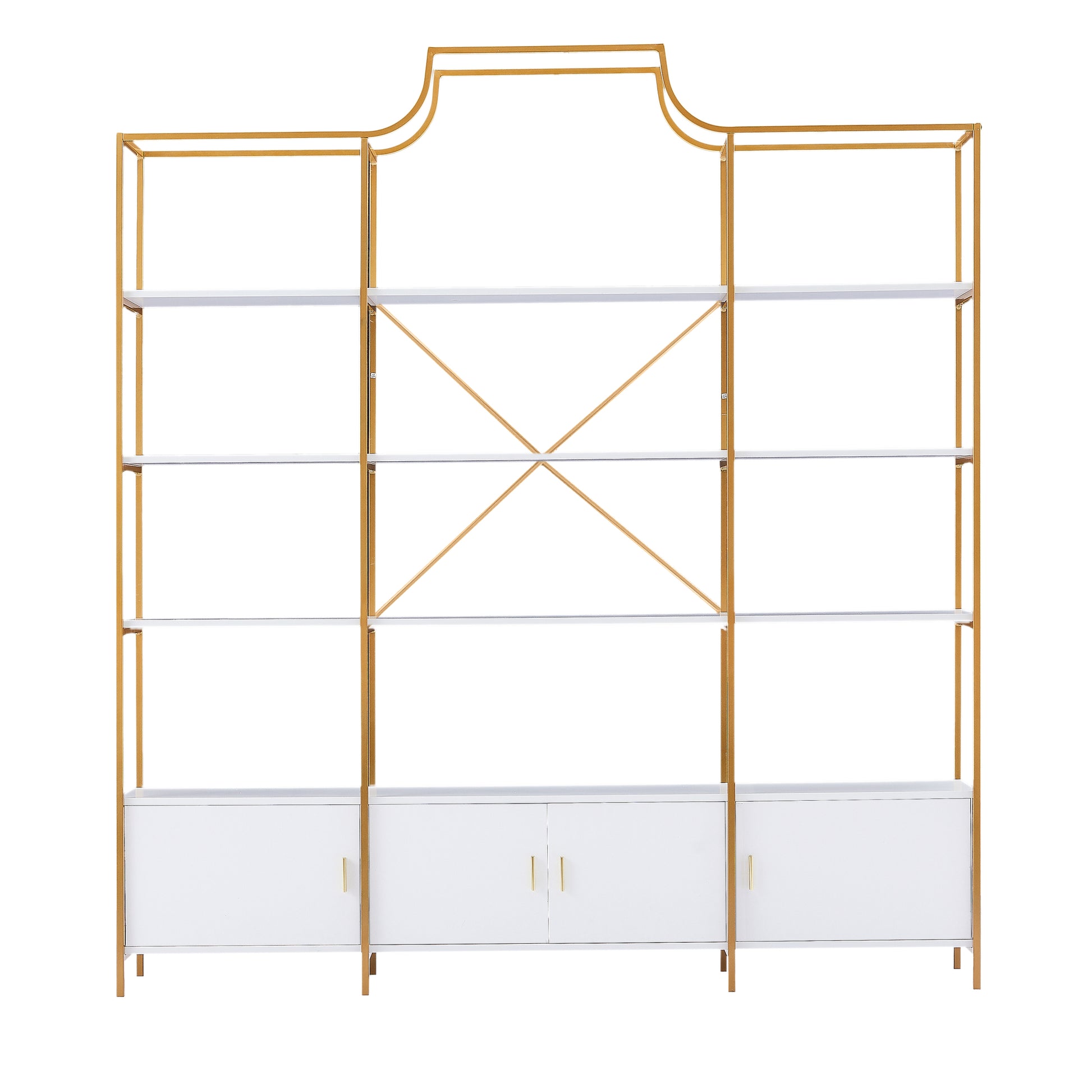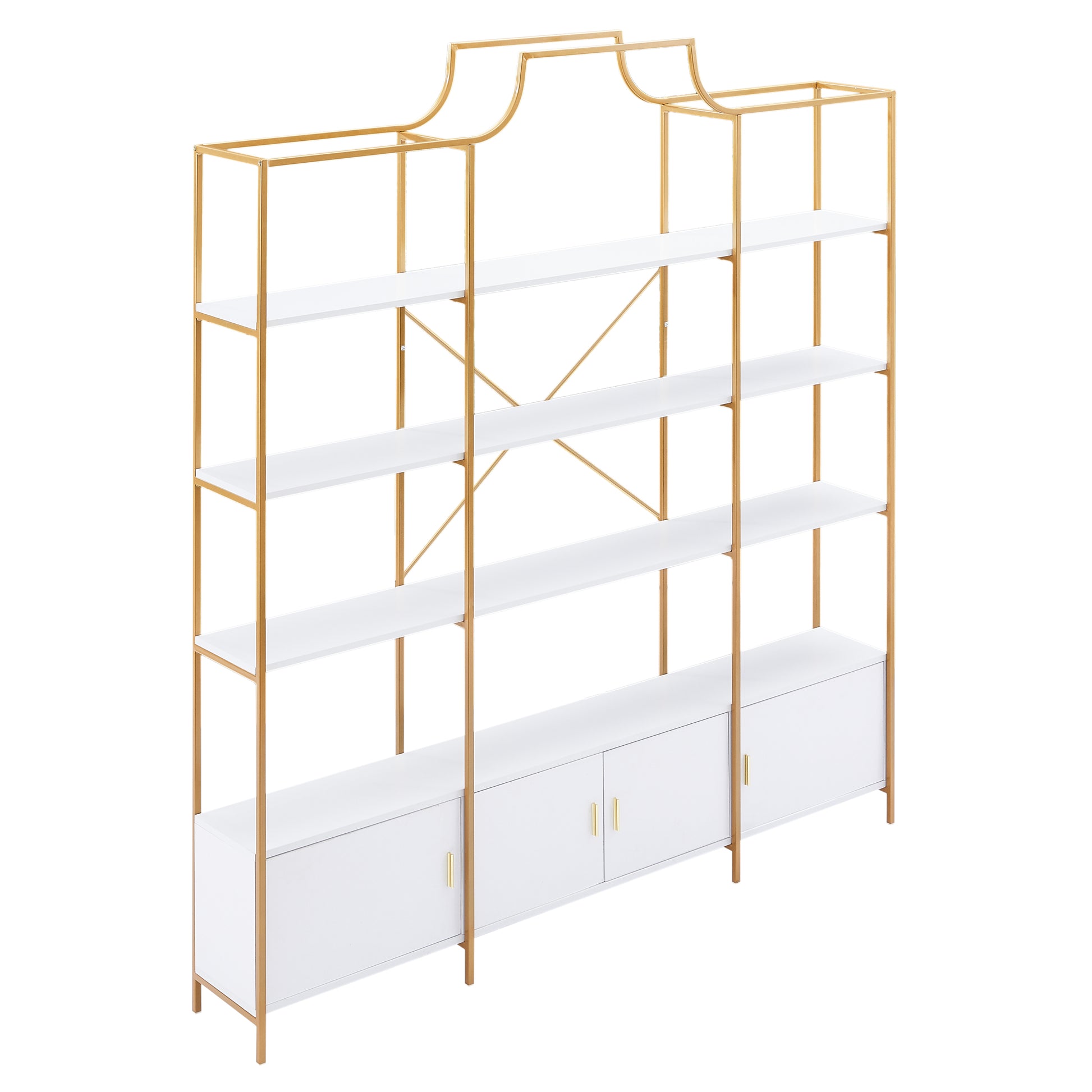 78 Inch 4 Tiers Home Office Bookcase Bookshelf, Storage Cabinet Display Shelf, X Bar Gold Frame Golden White Mdf Steel