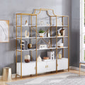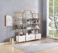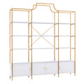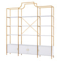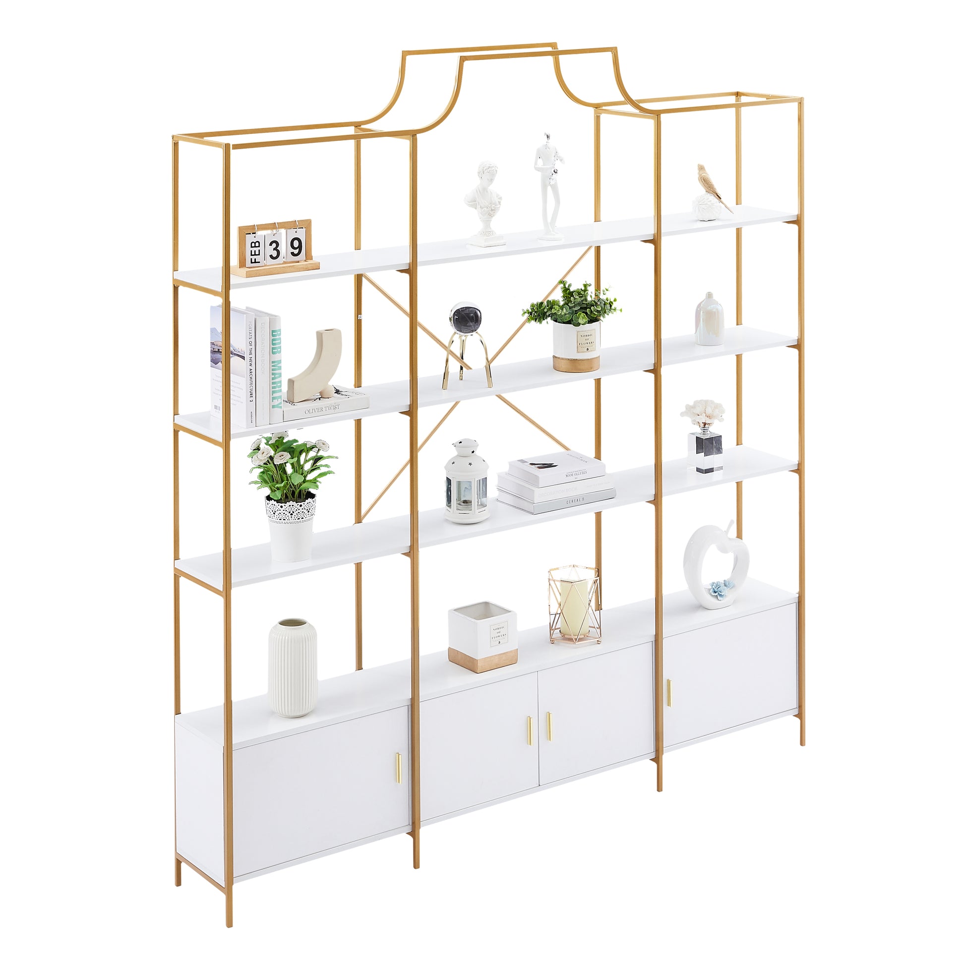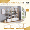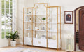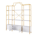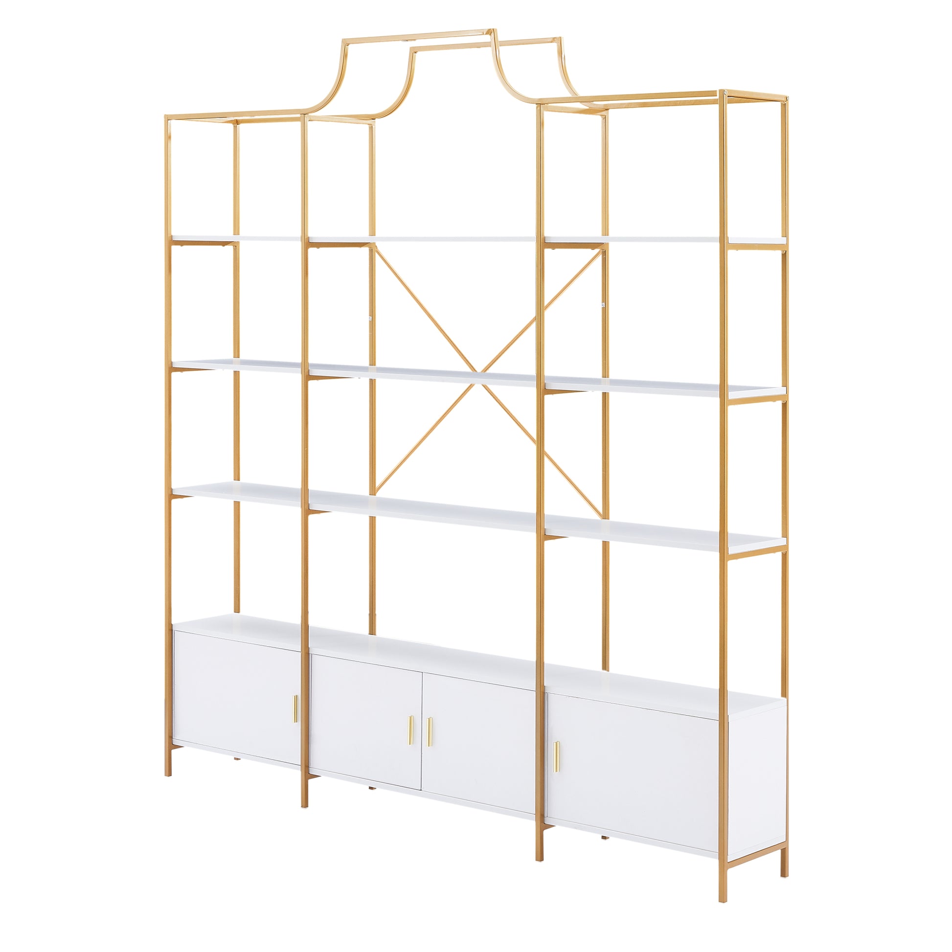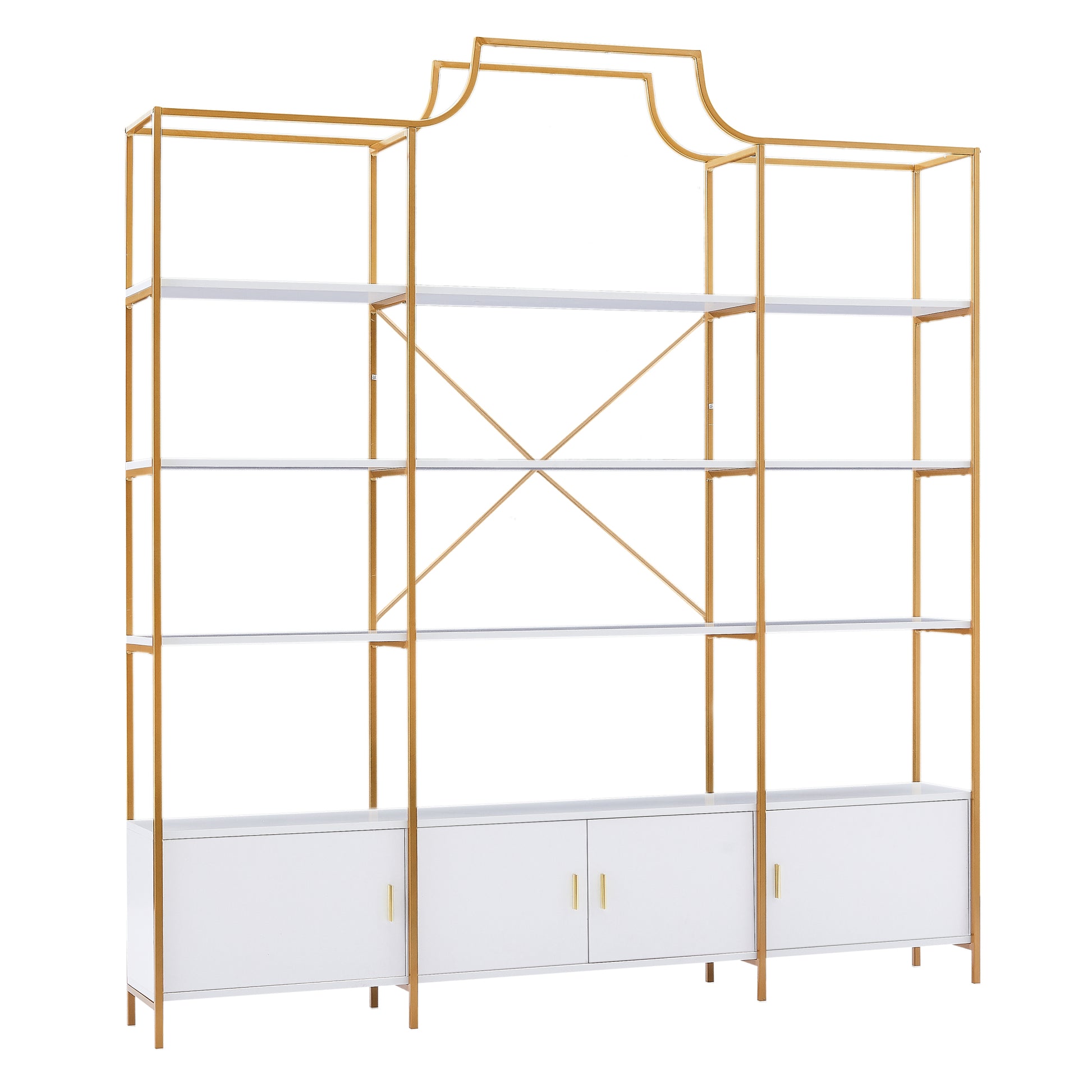 78 Inch 4 Tiers Home Office Bookcase Bookshelf, Storage Cabinet Display Shelf, X Bar Gold Frame Golden White Mdf Steel