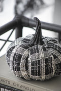 7X7X7" Fabric Light Black White Plaid Pumpkin, For Holiday Halloween Decor Black,White Polyester