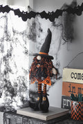 8.3X5X24" Fabric Standing Gnome W Orange Banner & Spring Body, For Halloween Decor Black,Orange,White Polyester