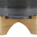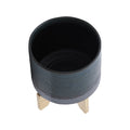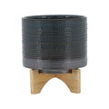 8" Dotted Planter W Wood Stand, Green Green Ceramic