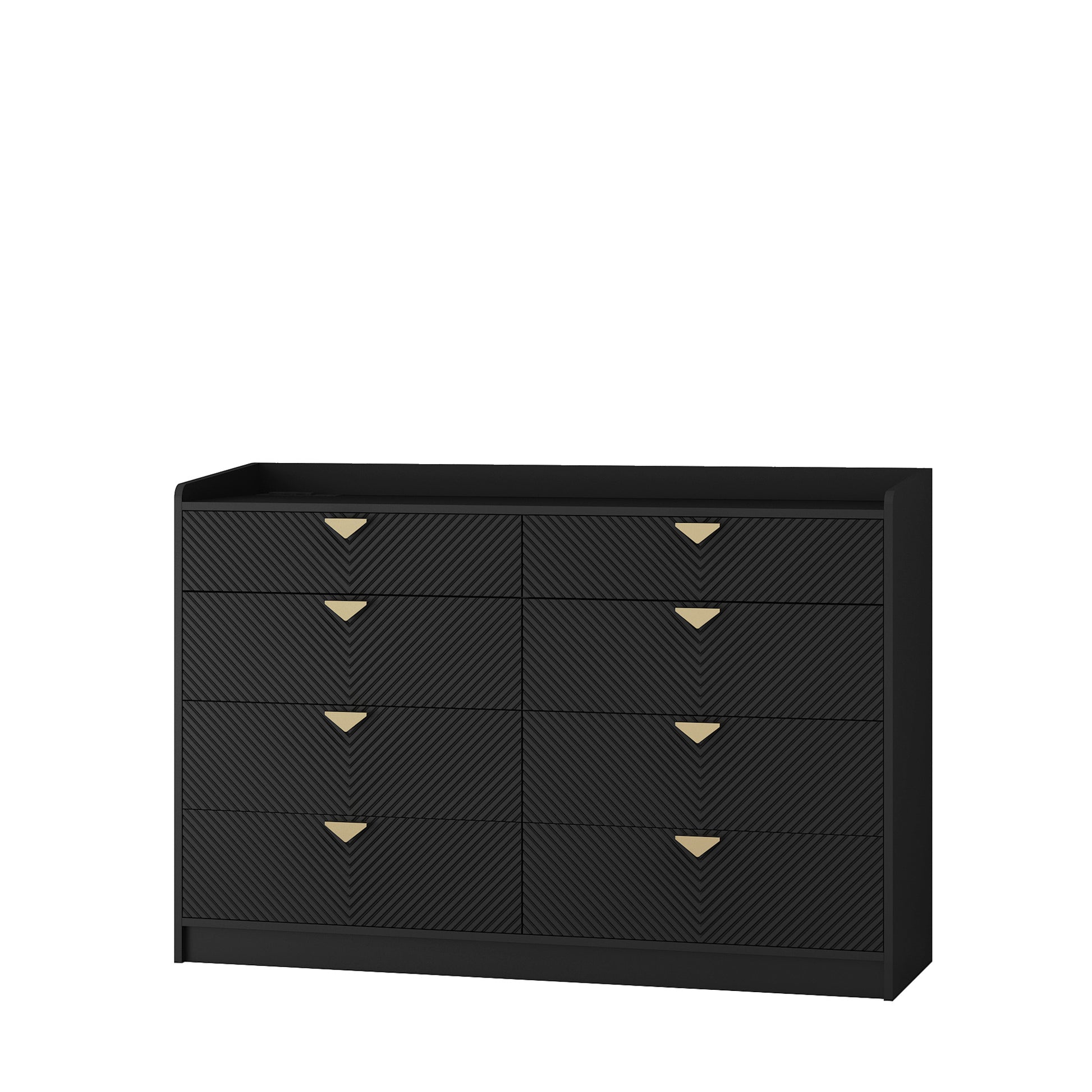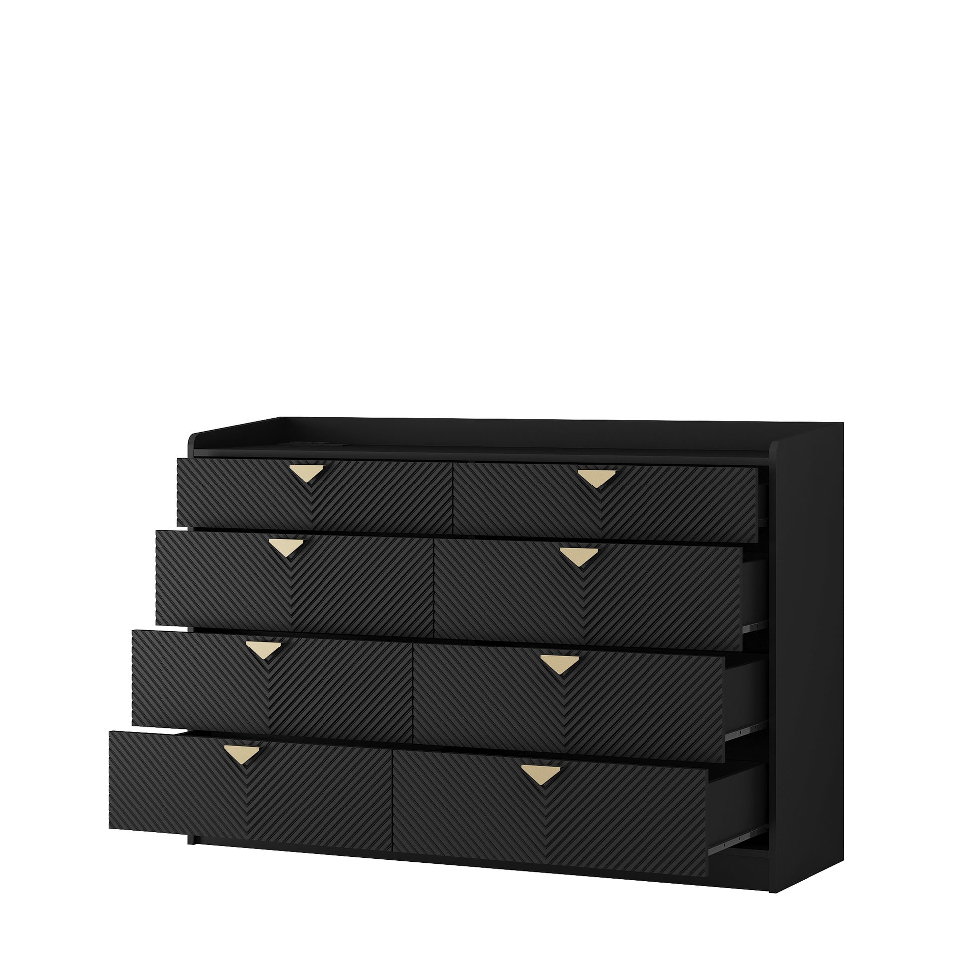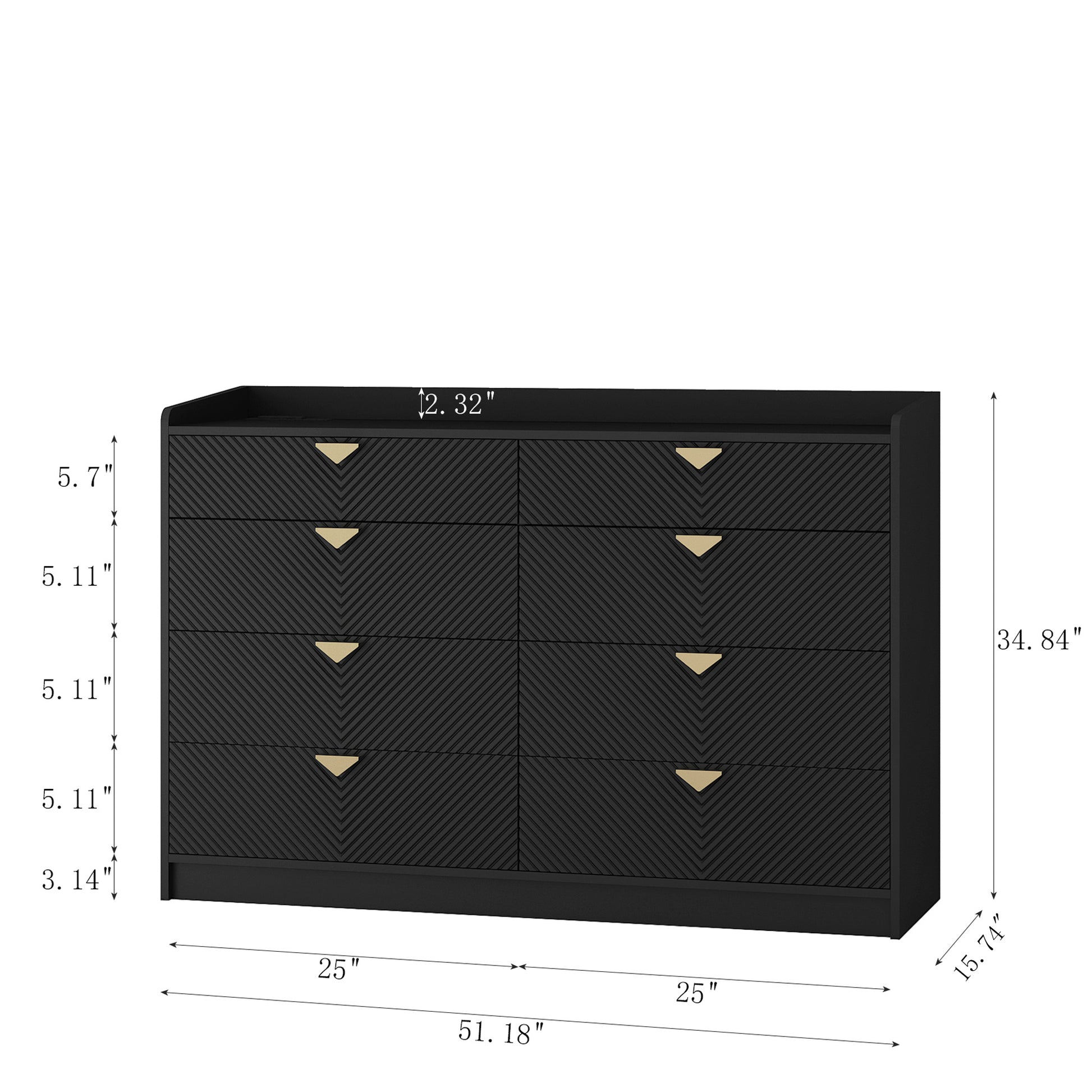 8 Drawer Double Dresser For Bedroom With Led, Modern Dressers Chest Of Drawers With Fluted Panel, Wide Wood Storage Dresser Organizer, Dresser For Bedroom, Living Room,Black Black Mdf