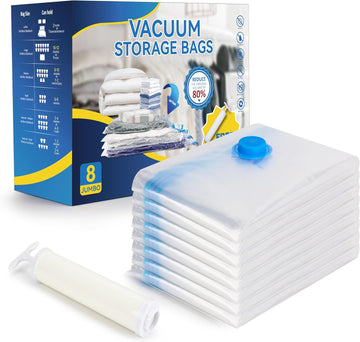 8 Jumbo Vacuum Storage Bags, Space Saver Bags, Vacuum Seal Bags With Hand Pump For Comforters, Blankets, Bedding, Pillows And Clothes White Polyethylene