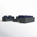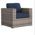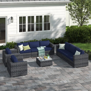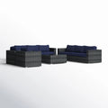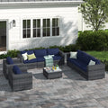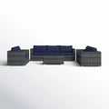 8 Person Wicker Seating Group With Sunbrella Cushions Fully Assembled Grey Mix,Navy Blue Wicker