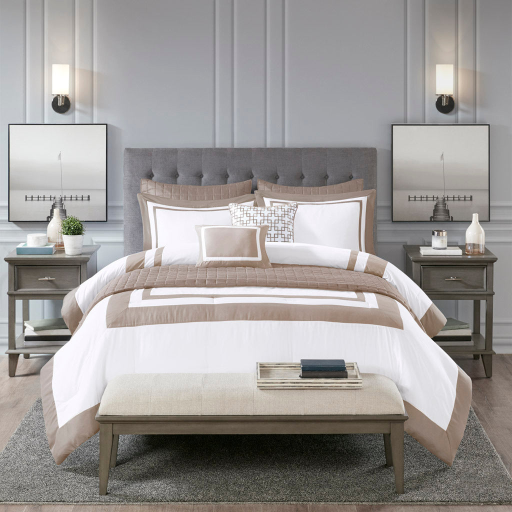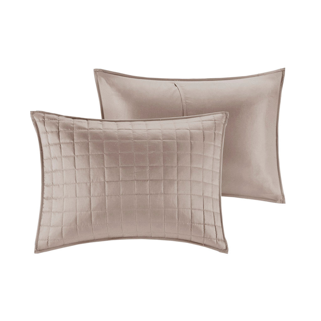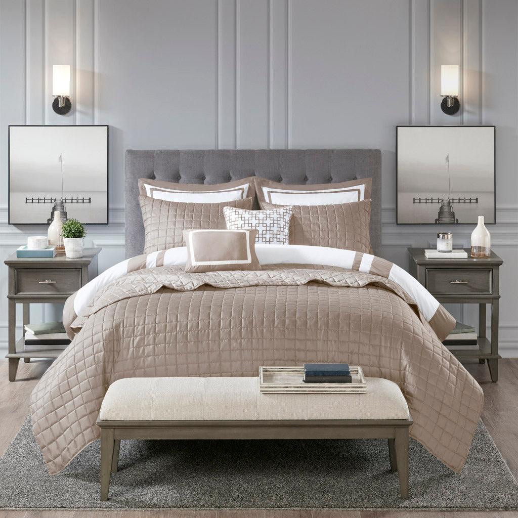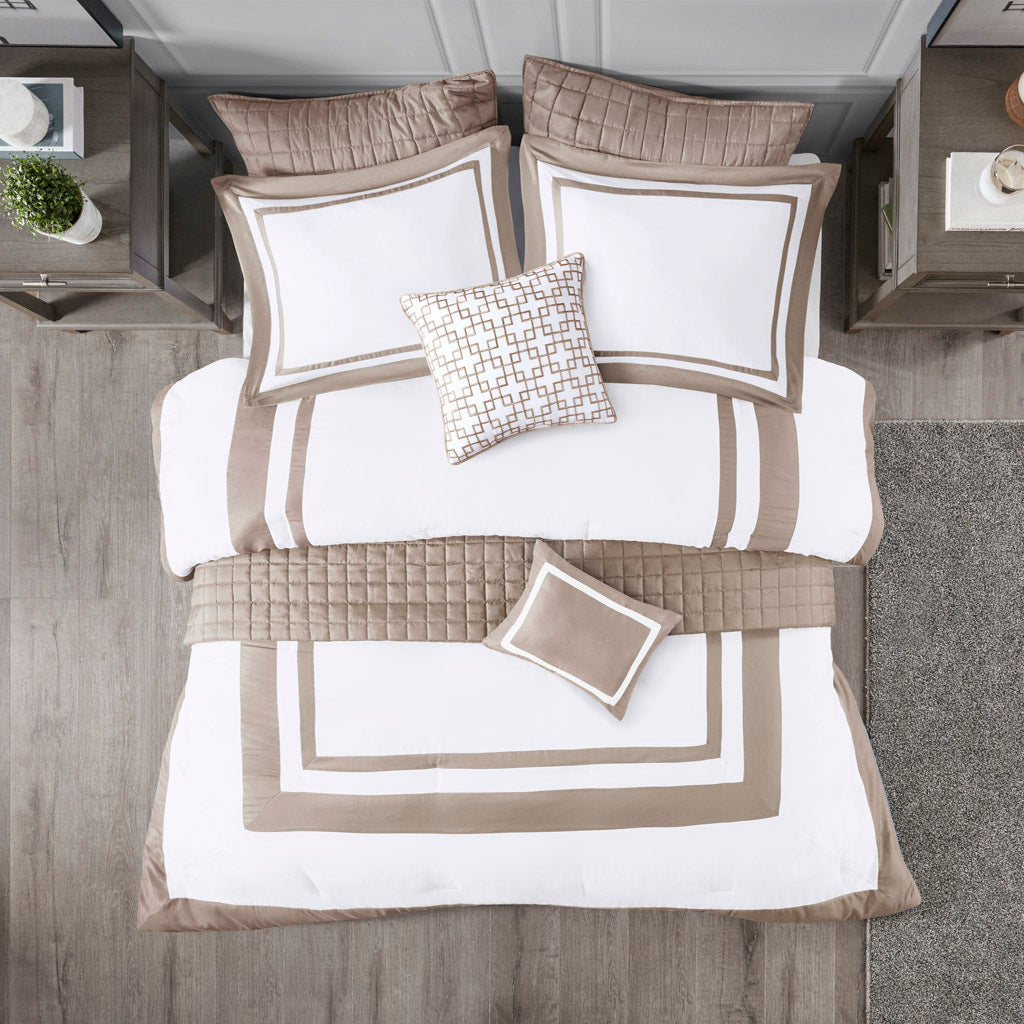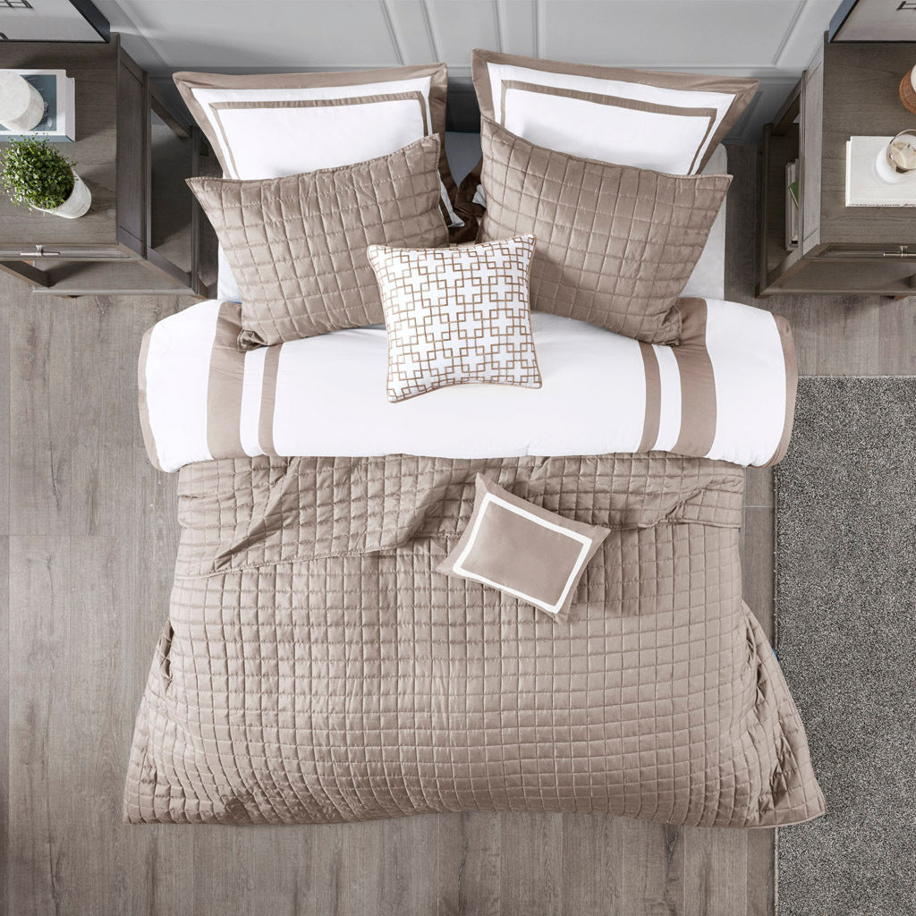 8 Piece Comforter And Quilt Set Collection Taupe Polyester